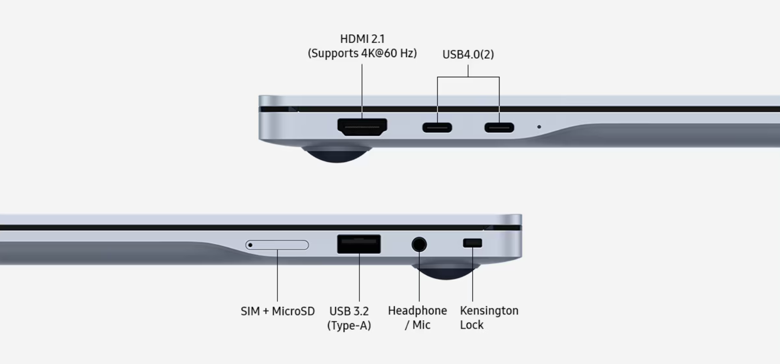 Z drugiej strony, porty HDMI 2.1, USB4 i USB 3.2 typu A z Galaxy Book4 Edge powróciły, podobnie jak gniazdo blokady Kensington i gniazdo 3,5 mm po prawej stronie laptopa. To samo dotyczy 15,6-calowego wyświetlacza IPS, który wyświetla obraz w rozdzielczości 1080p w proporcjach 16:9 z powłoką antyodblaskową. Podobnie, nowszy laptop Samsunga utrzymuje niezmienioną pojemność baterii 61,2 Wh z obsługą ładowania 65 W przy mniej więcej takich samych wymiarach 356,6 x 229,8 x 15,5 mm jak jego poprzednik.