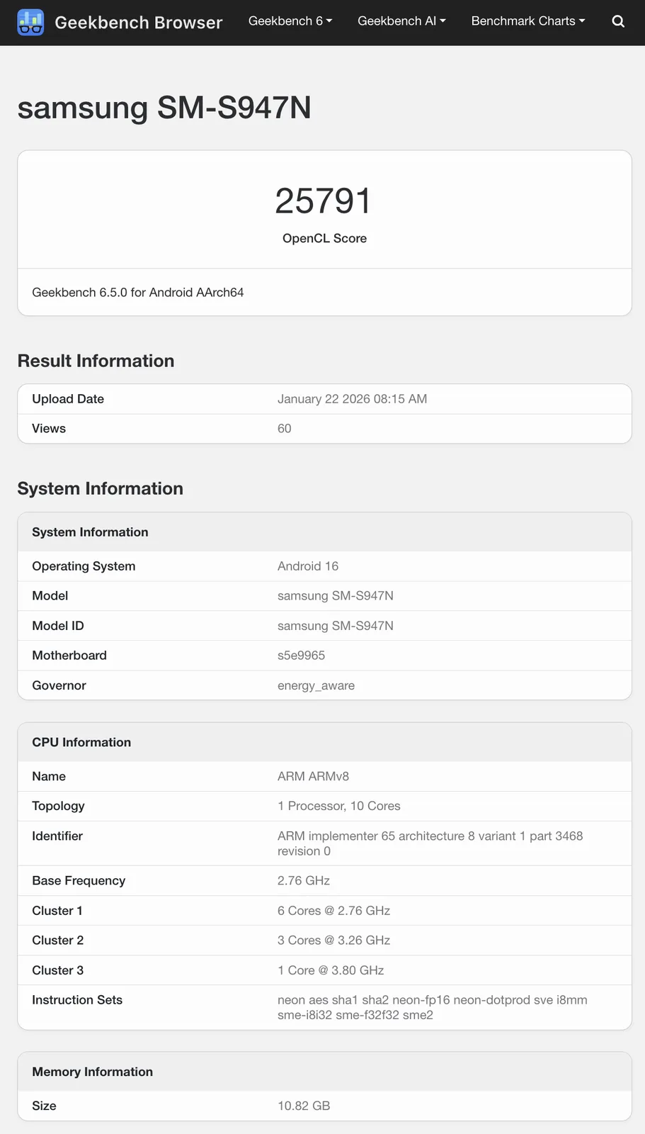 Niezależnie od tego, Exynos 2600 wewnątrz Galaxy S26 Plus tutaj przewyższa porównywalne testy porównawcze dla Galaxy S26. Co więcej, wyniki 24,964 i 25,791 plasują Exynos 2600 i jego GPU Xclipse 960 na poziomie Snapdragon 8 Elite Gen 5 w benchmarku Geekbench 6 OpenCL. To, czy przekłada się to na rzeczywistą wydajność, pozostanie nieznane, dopóki niezależne recenzje nie zaczną pojawiać się pod koniec lutego lub na początku marca.
