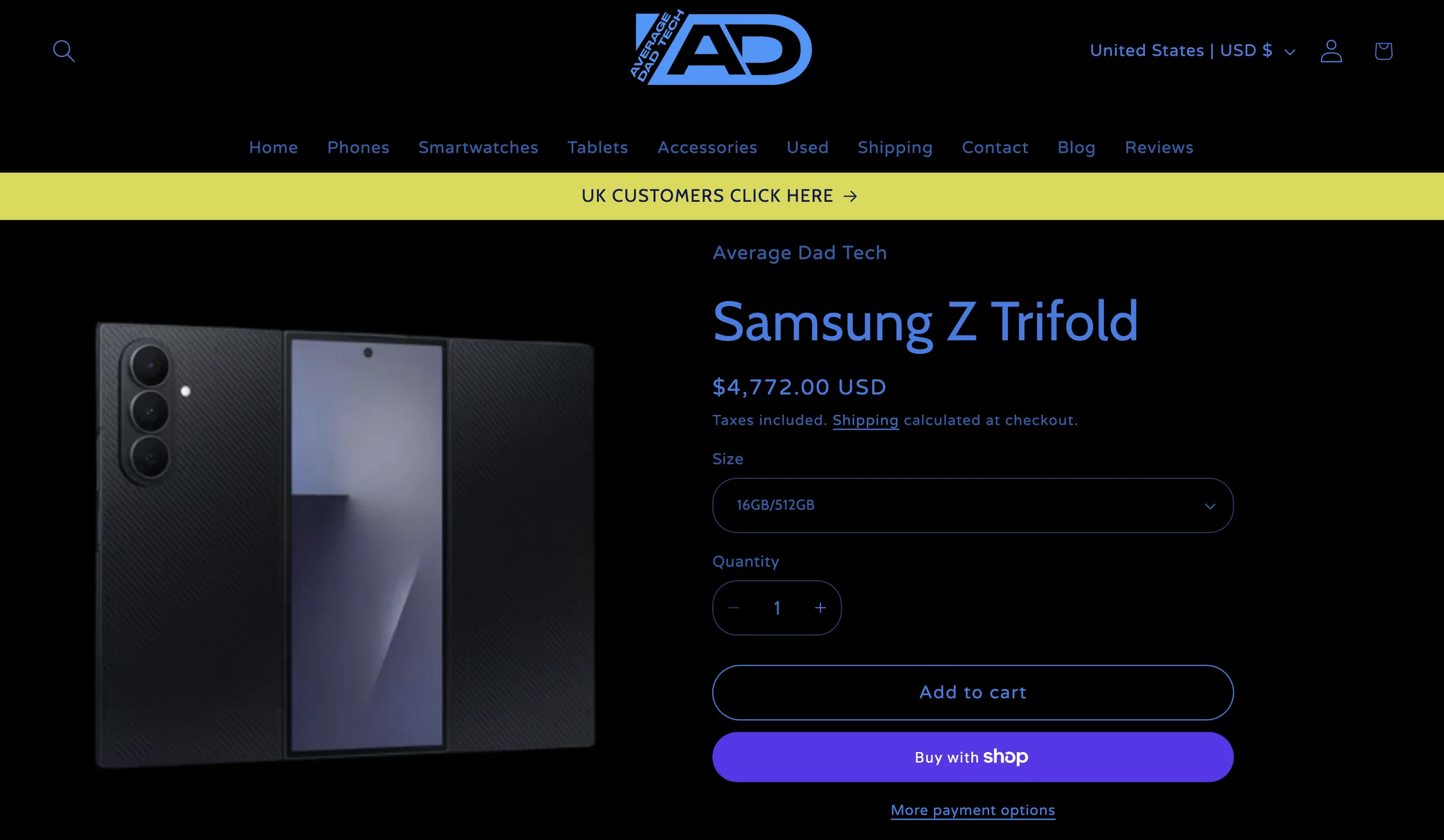 W międzyczasie zewnętrzni importerzy zaczęli już oferować Galaxy Z TriFold dla tych, którzy są skłonni zapłacić więcej niż sugerowana cena detaliczna. W szczególności, Average Dad Tech i Trinity Electronics oferują teraz pierwszy składany trójkąt Samsunga na całym świecie, choć z pewnymi zastrzeżeniami. Na przykład, Average Dad Tech ostrzega, że czas realizacji zamówień może być długi.
