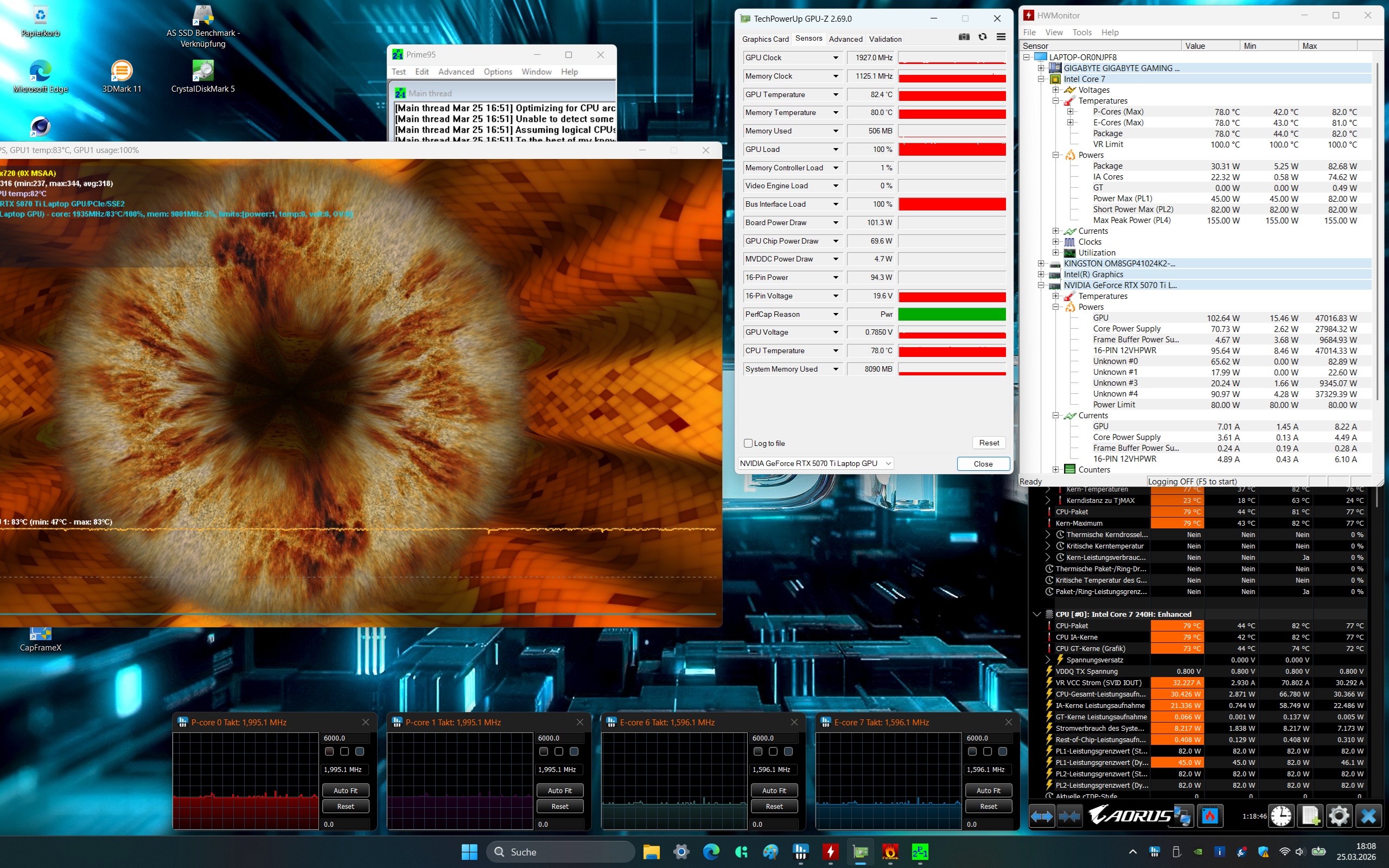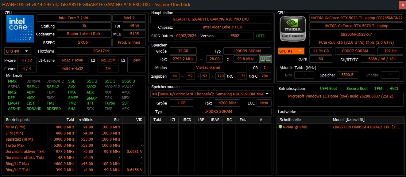 | Gigabyte Gaming A18 Pro Core 7 240H, GeForce RTX 5070 Ti Laptop | Lenovo Legion 9 18IAX10 Ultra 9 275HX, GeForce RTX 5080 Laptop | Medion Erazer Beast 18 X1 MD62731 Ultra 9 275HX, GeForce RTX 5080 Laptop | MSI Vector A18 HX A9W R9 9955HX, GeForce RTX 5070 Ti Laptop | Asus TUF Gaming A18 FA808UP-S8022W R7 260, GeForce RTX 5070 Laptop | Acer Nitro 18 AI AN18-61-R10V Ryzen AI 7 350, GeForce RTX 5070 Laptop | |