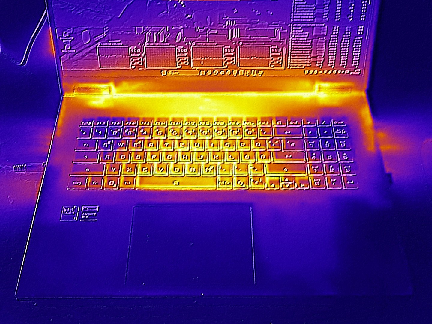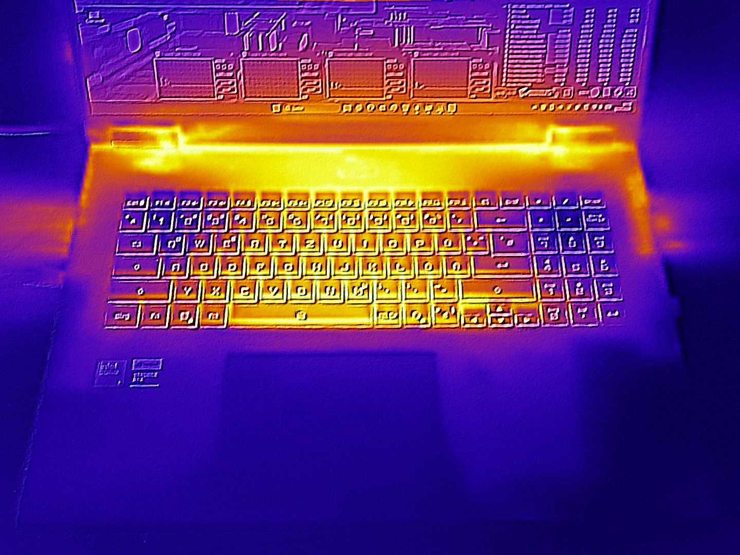 (+) Podpórki pod nadgarstki i touchpad są chłodniejsze niż temperatura skóry i maksymalnie 27 °C / 80.6 F i dlatego są chłodne w dotyku.