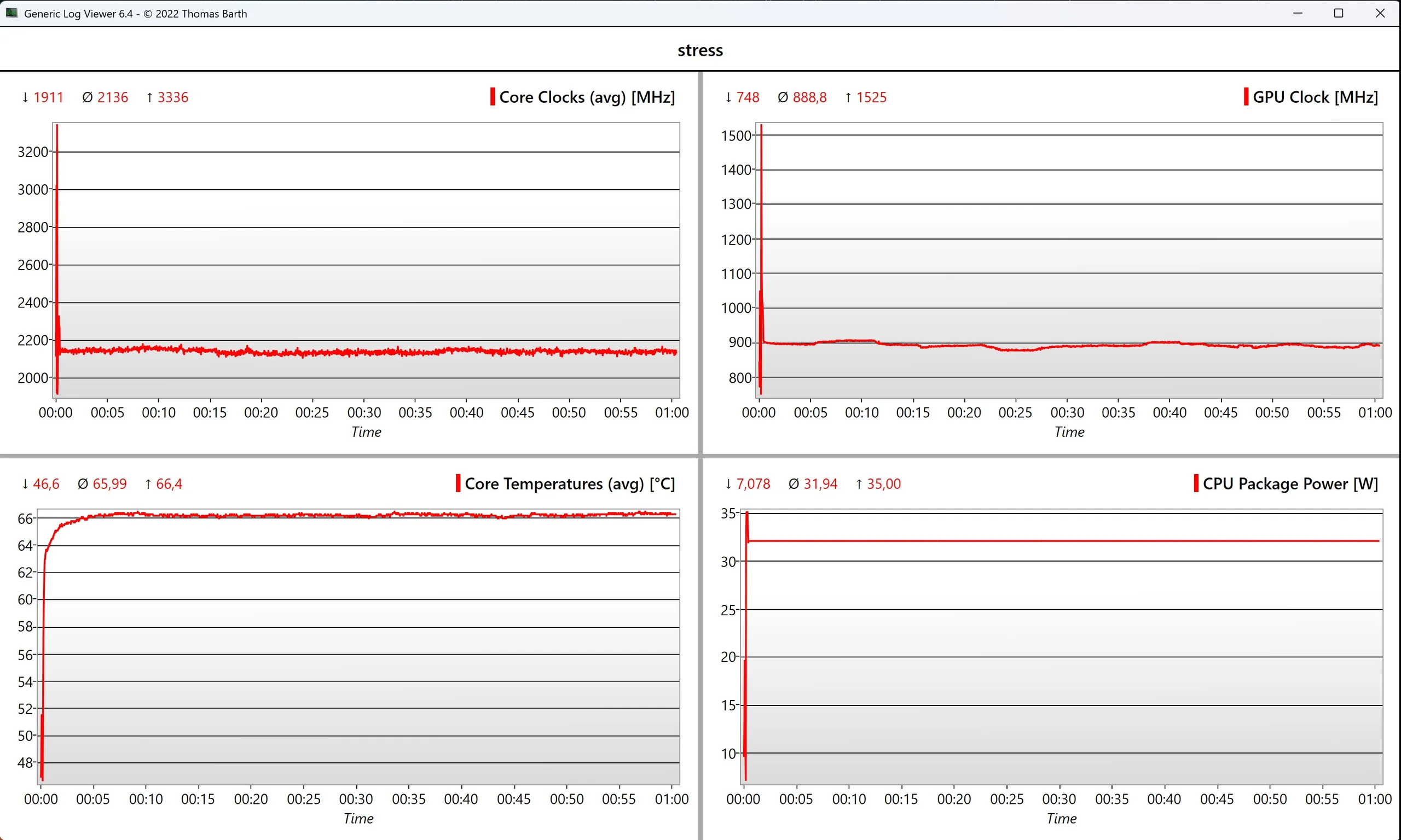 Podczas grania czas pracy zależy w dużej mierze od wybranego profilu zasilania. W trybie Performance (gdzie TDP jest szybko ograniczane do 20 W), czas pracy na baterii wynosi około 2,5 godziny. Korzystanie z pełnej mocy w trybie ręcznym skraca czas pracy do nieco ponad godziny (1:17 godziny). W trybie cichym urządzenie wytrzymuje nieco ponad pięć godzin, podczas gdy tryb zrównoważony zapewnia nieco poniżej trzech godzin.