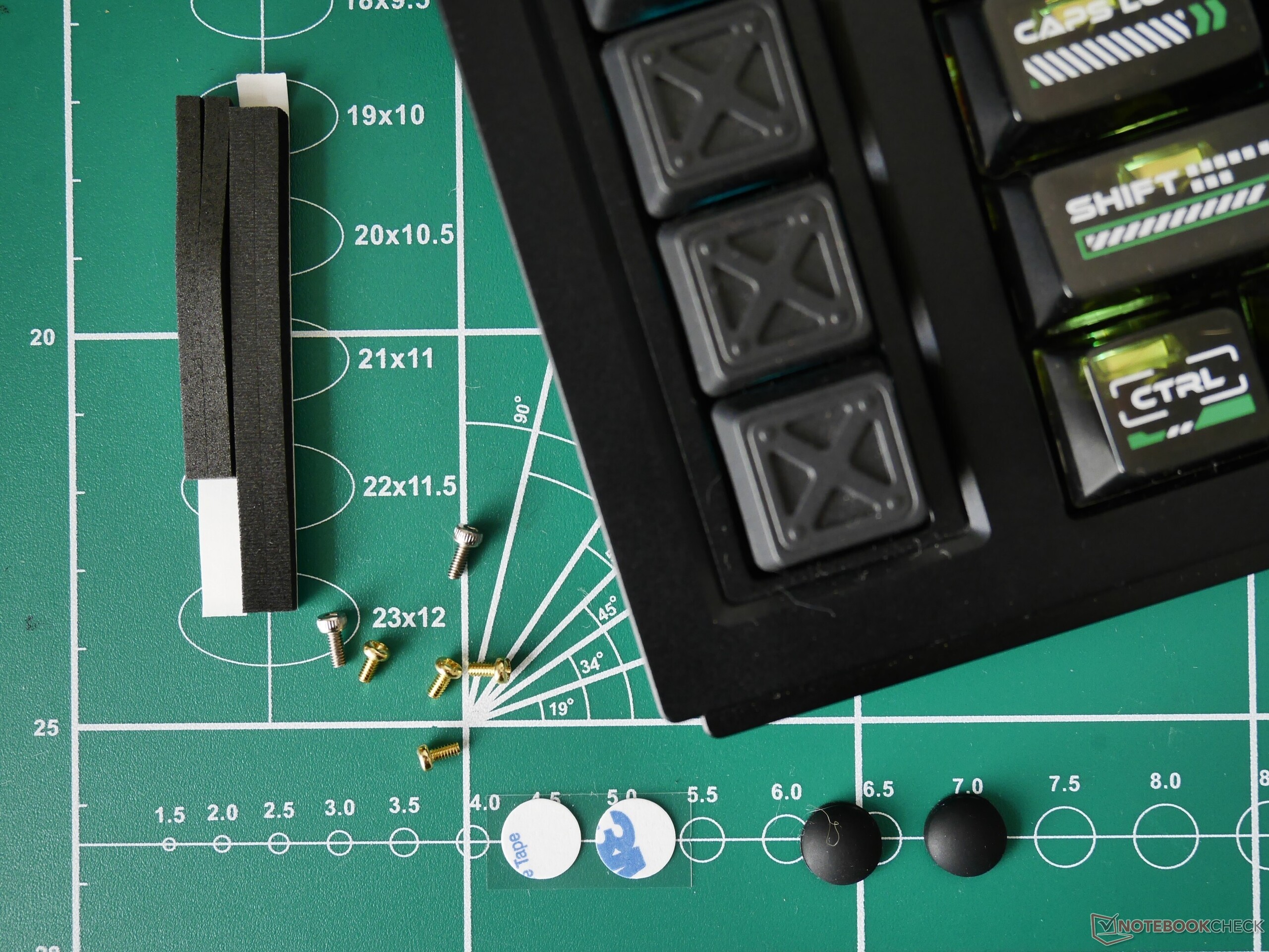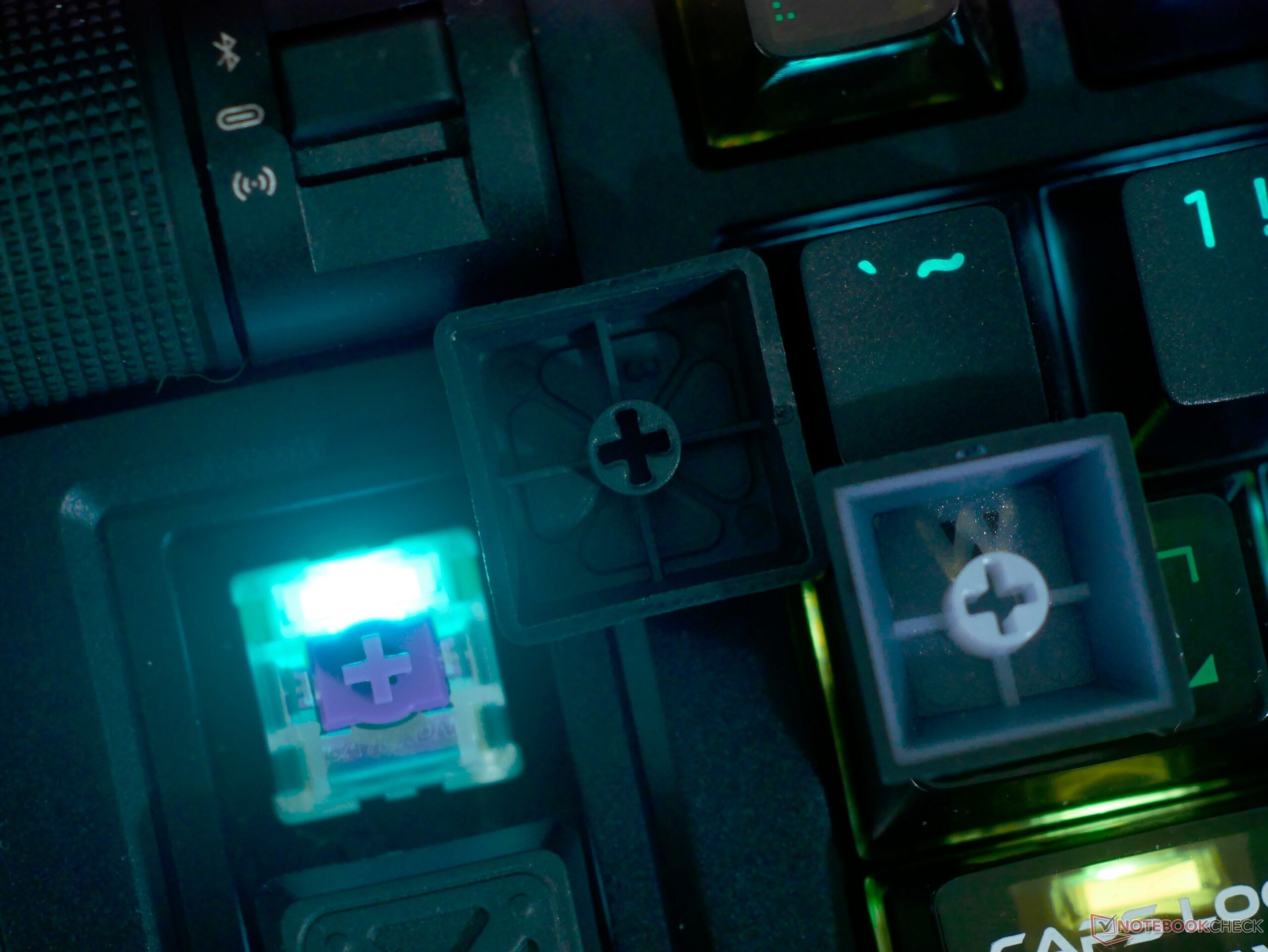 Podobnie, nakładki na klawisze i pakiet akcesoriów są również wysokiej jakości. Napisy na klawiszach są równomiernie oświetlone przez podświetlenie RGB, a tekstura na głównych klawiszach jest przyjemna w dotyku. Przezroczyste nakładki na klawisze PC mają błyszczącą powierzchnię, która może być niewygodna dla niektórych, ale łatwo było się do niej przyzwyczaić podczas naszego okresu testowego.