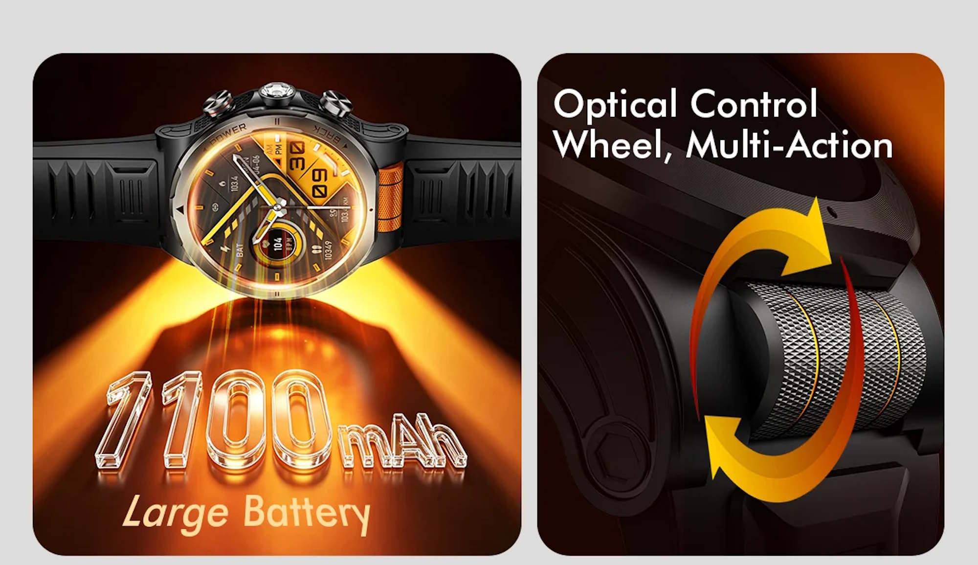 Na pokładzie znajduje się również ekran AMOLED o rozdzielczości 466 x 466 pikseli. Smartwatch wykorzystuje ponadto baterię o pojemności 1100 mAh, a producent określa jej żywotność na ponad 100 dni. Liczba ta nie musi być całkowicie nierealna, chociaż żywotność baterii faktycznie możliwa do osiągnięcia w przypadku urządzeń do noszenia zależy w dużej mierze od czynników, takich jak częstotliwość aktywacji wyświetlacza przez powiadomienia lub ręcznie. Rogbid SpinX jest również wyposażony w latarkę.