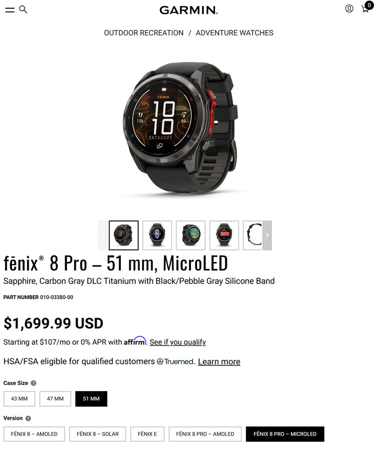 Początkowo między 51-milimetrowymi wersjami Fenix 8 Pro z wyświetlaczami AMOLED i MicroLED istniała różnica 800 USD. W rezultacie jedynym sposobem na wybranie nowej, ultrajasnej technologii wyświetlania Garmina było wydanie 1 999,99 USD.