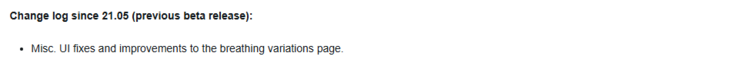 Zgodnie z dziennikiem zmian dla wersji beta 21.06, ta nowa wersja oferuje ulepszenia strony wariacji oddechowych, znajdującej się w analizie snu. Ponadto mówi się, że istnieją różne poprawki interfejsu użytkownika (UI), choć nie podano dalszych szczegółów.