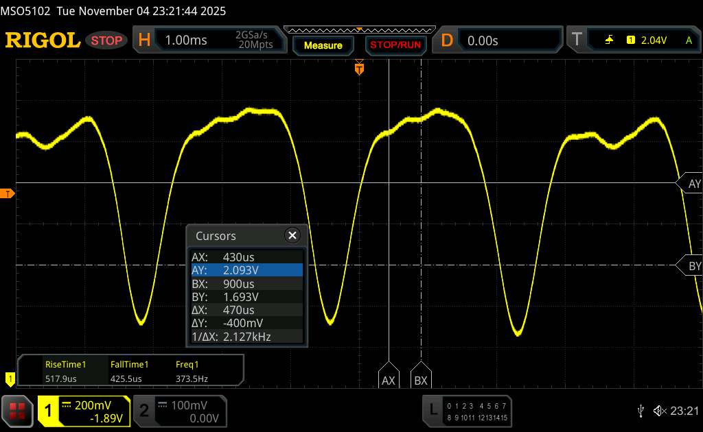 (+) | bas jest liniowy (4.8% delta do poprzedniej częstotliwości)