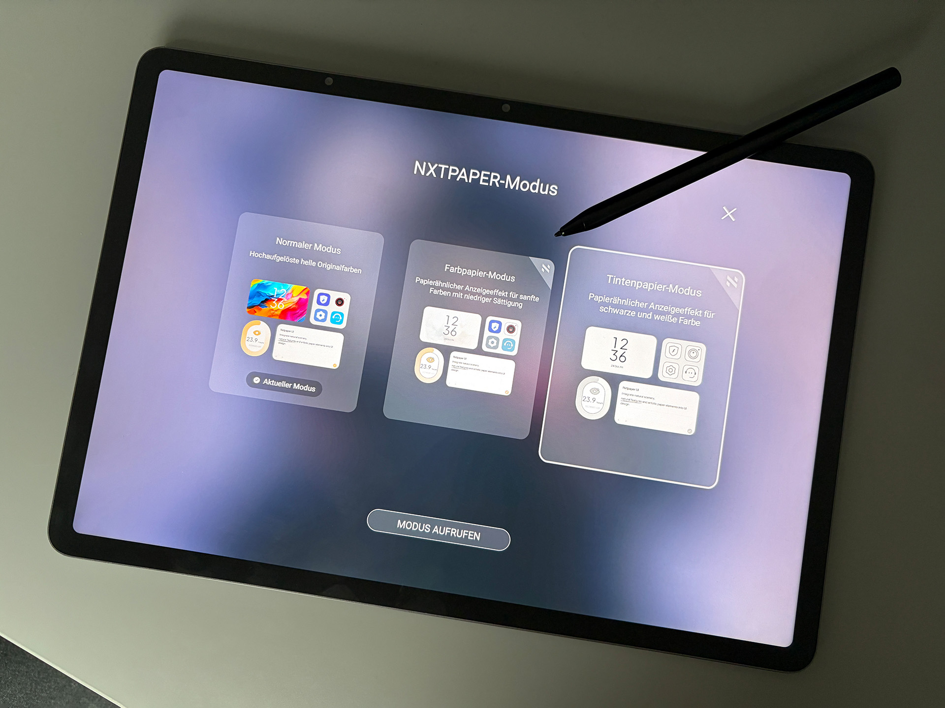 Tryb wyświetlania można zmienić za pomocą dedykowanego przycisku. Oprócz trybu standardowego, dostępny jest tryb Color Paper, który został zaprojektowany do symulacji kolorowego papieru, co skutkuje znacznie cieplejszym obrazem o niższym nasyceniu i bardziej miękkich kolorach. Trzeci tryb nosi nazwę Ink Paper i jest ograniczony do wydruków monochromatycznych, podobnie jak w czytnikach e-booków. Nie ma jednak prawdziwego wyświetlacza E Ink i chcielibyśmy zobaczyć lepszą kalibrację dla reprodukcji kolorów.