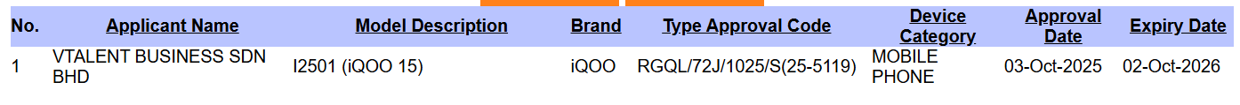 Vivo X300 Pro o numerze modelu "V2514" otrzymał certyfikat SIRIM w Malezji. Dodatkowo iQoo 15 otrzymał certyfikat z numerem modelu "I2501" Certyfikaty SIRIM nie ujawniają żadnych specyfikacji specyfikacji urządzeń. Można je jednak postrzegać jako wskazanie zbliżającej się globalnej premiery.