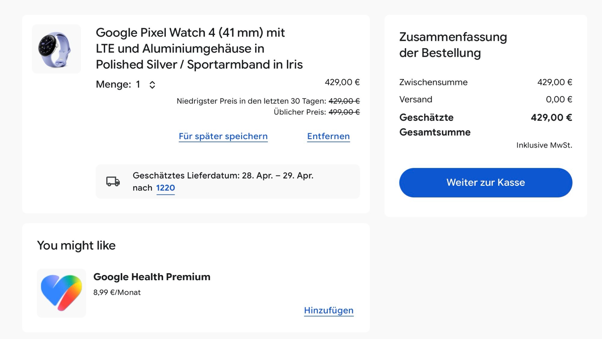 Jeśli obecnie dodają Państwo zegarek Pixel Watch 4 do koszyka w sklepie internetowym Google https://store.google.com/at/product/pixel_watch_4?hl=degoogle poleca nową subskrypcję "Google Health Premium" w cenie 8,99 euro miesięcznie. Jak 9to5Google odkryto, subskrypcja jest już wymieniona w aplikacji Fitbit, albo za 9,99 USD miesięcznie, albo za 99,99 USD rocznie. Roczna subskrypcja kosztuje zatem 20 dolarów więcej niż Fitbit Premium. Nie wiadomo jeszcze, czy Google Health Premium ma być uzupełnieniem czy zamiennikiem Fitbit Premium.
