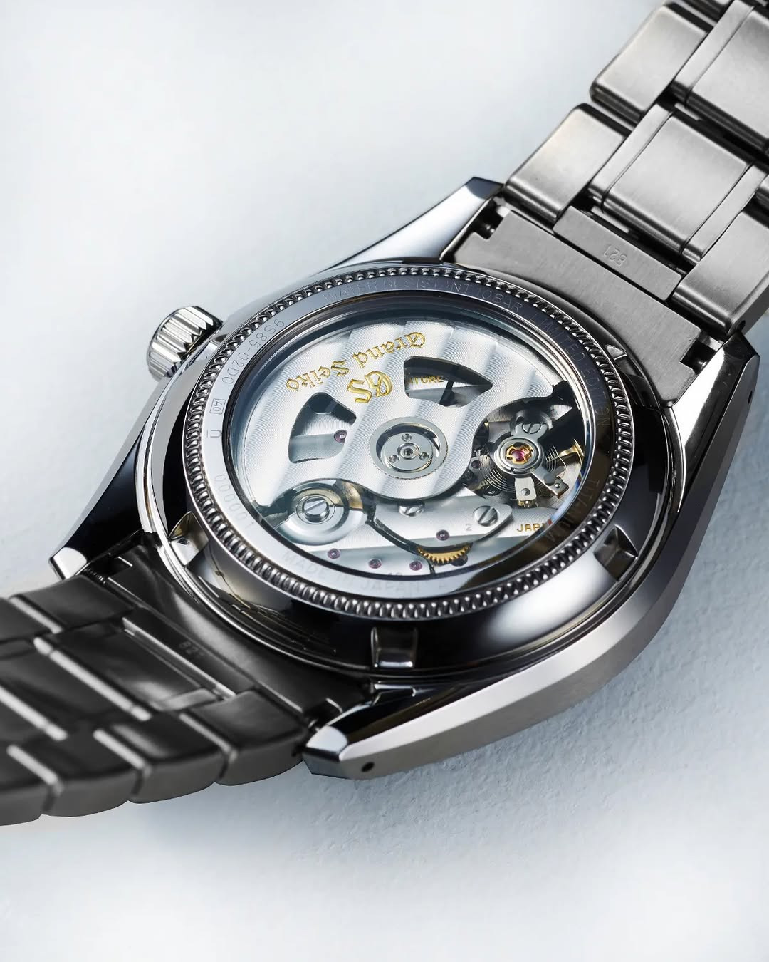 Zegarek napędza automatyczny mechanizm 9S85 hi-beatpracujący z prędkością 36 000 Vph, widoczny przez szafirowy dekiel. Zdjęcia z otwartym deklem pokazują wirnik z wygrawerowanymi złotymi napisami i paskami na płytkach.