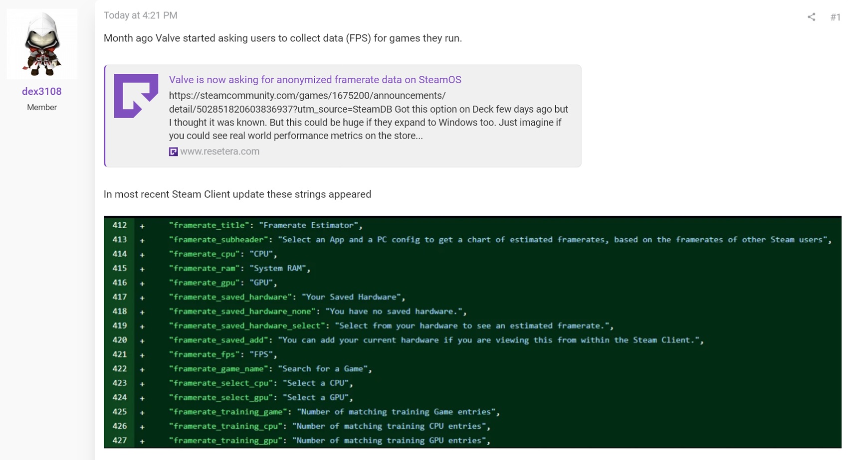 Valve wcześniej wprowadziło funkcję beta do śledzenia wydajności w tle podczas rozgrywki. Opcja ta ma na celu "poznanie kompatybilności gier i ulepszenie Steam" Uwzględniałaby ona konfigurację systemu, ale bez wiązania danych z kontem w sklepie. Praktyka ta była jednak ograniczona do sprzętu SteamOS, takiego jak Steam Deck i nadchodzące Steam Machine.