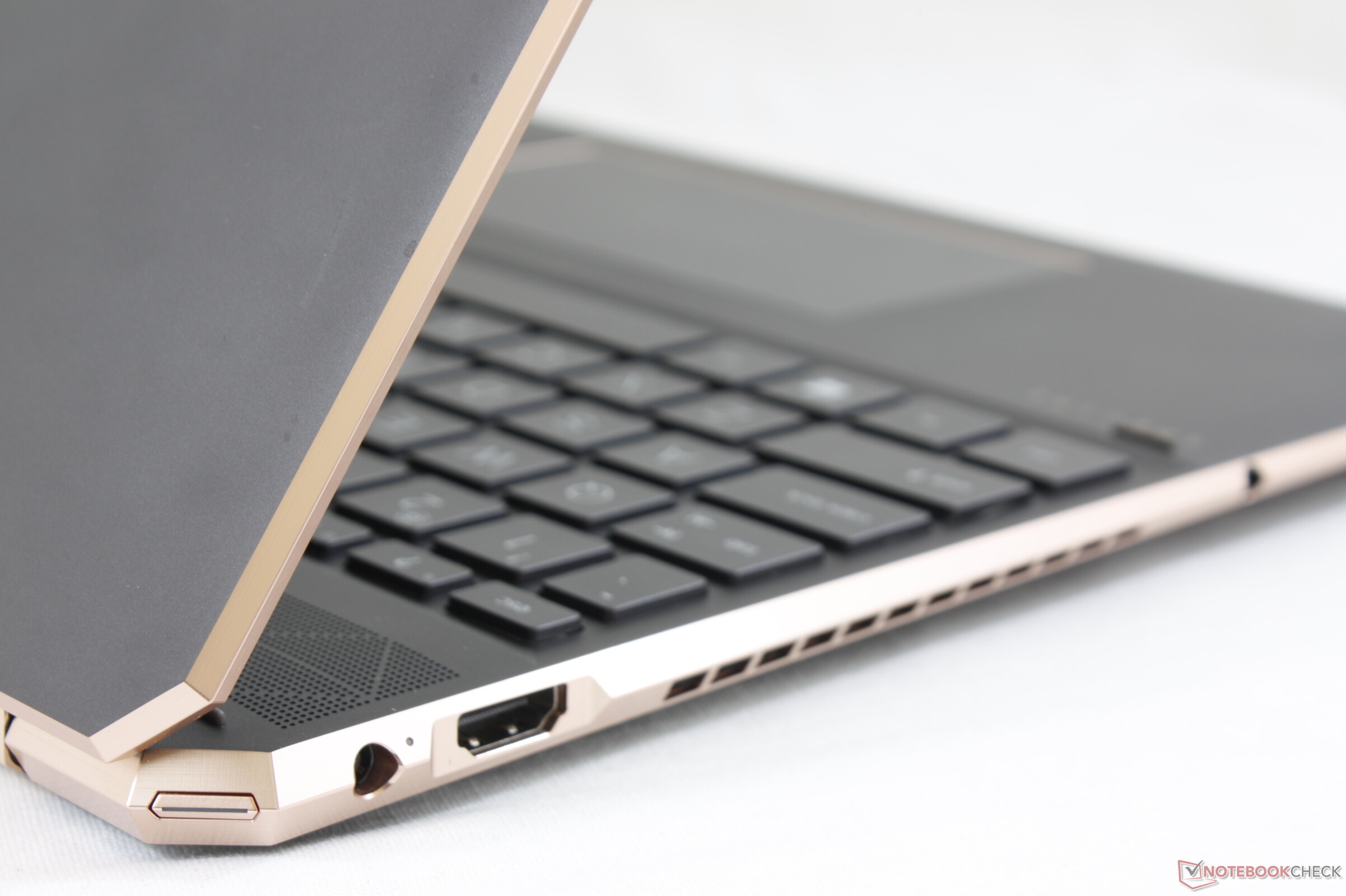 HP Spectre X360 15, model rocznikowy 2019, to nie tylko nowe podzespoły. Zadbano także o stronę wizualną, która i tak już była na wysokim poziomie. Nowy wygląd otrzymały tylne narożniki. Przeniesiono czytnik linii papilarnych, który w modelu 2018 znajdował się w niezbyt szczęśliwym miejscu. To by było na tyle różnic. Nadal jest to jedna ze sztywniejszych konstrukcji, która dobrze wypada w porównaniu z laptopami Asus UX534FT, Lenovo Yoga C940-15 i Dell XPS 15 2 w 1.