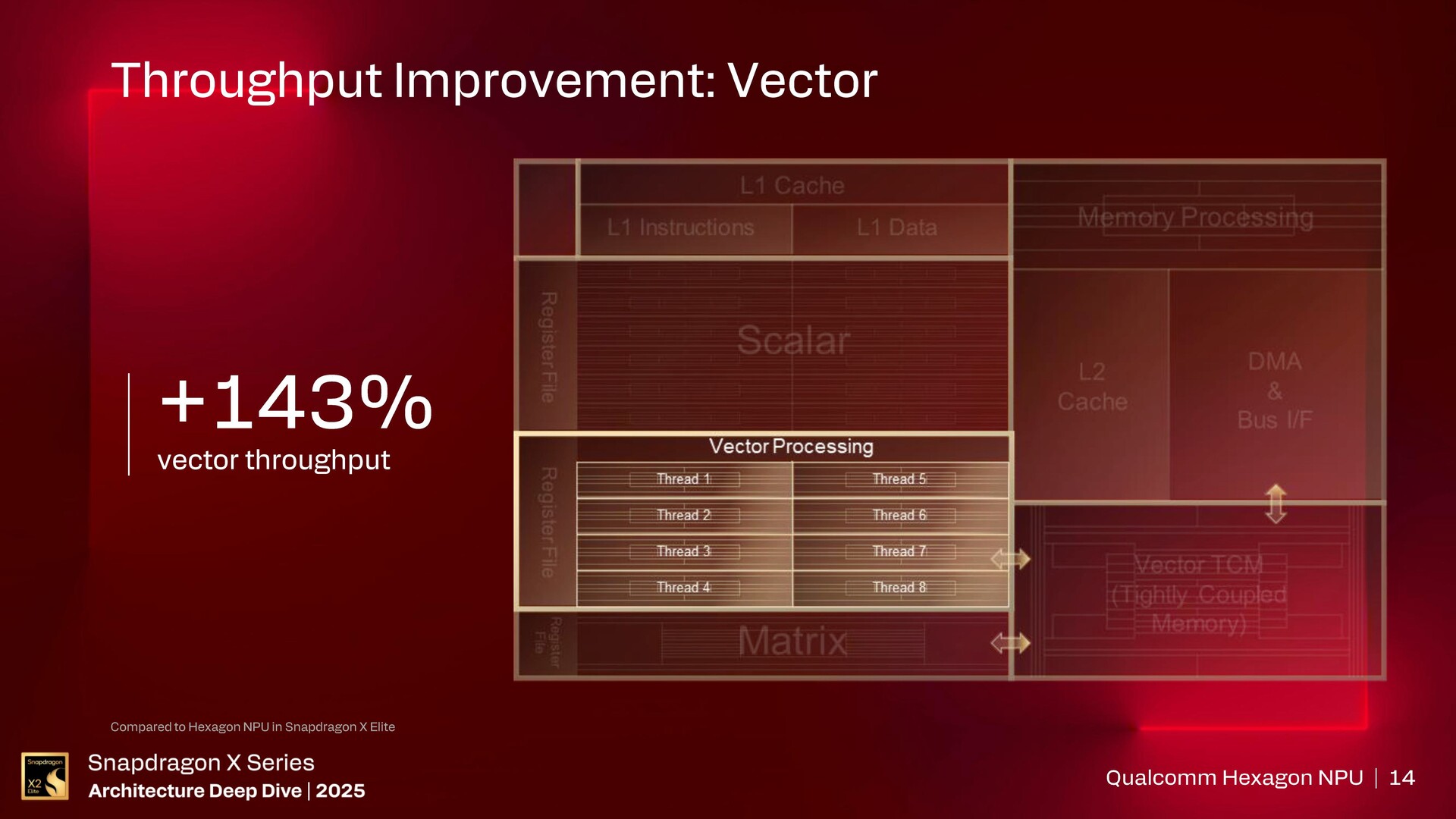 Przetwarzanie skalarne obejmuje teraz 12 wątków z 4-wątkowym bardzo długim słowem instrukcji (VLIW) na wątek, co skutkuje 143% wzrostem przepustowości przy zmniejszonym opóźnieniu.