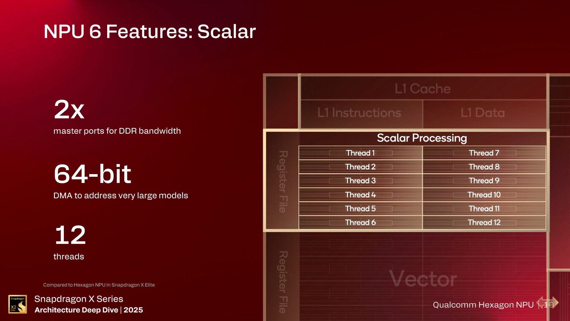 Qualcomm szczegółowo opisał, w jaki sposób Hexagon pierwotnie zaczynał jako cyfrowy procesor sygnałowy, który obejmował głównie przetwarzanie skalarne do obecnej formy NPU 6, która obsługuje również wektor, liczbę całkowitą i akcelerację macierzy FP16.