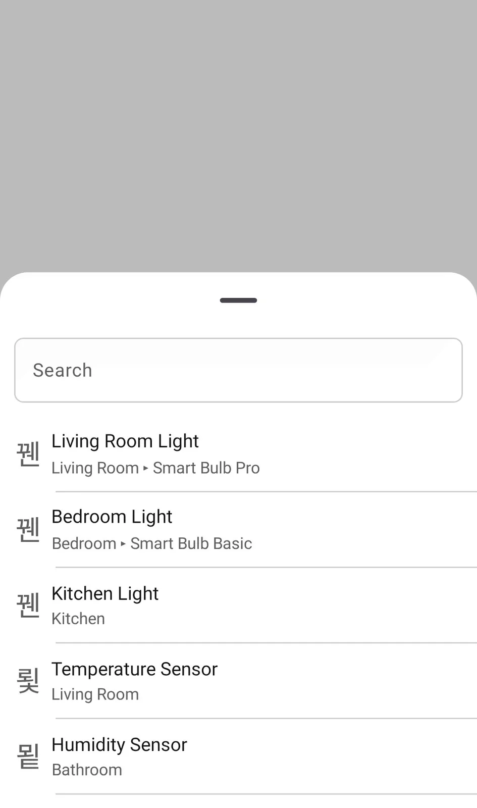 Home Assistant dodał również nowy selektor podmiotów do swojej aplikacji Android w wersji 2026.1 (patrz zrzut ekranu poniżej). Ponownie, ta funkcja jest już dostępna dla użytkowników iOS, pojawiając się w wersja 2026.1. Dodano nowe filtry dla ID, nazwy i obszaru, aby poprawić komfort użytkowania.