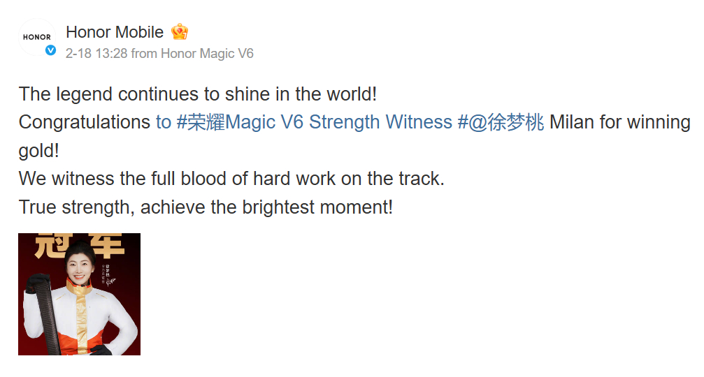 Na początku tego miesiąca aktor Nicholas Tse został zauważony podczas korzystania z niewydanego jeszcze składanego smartfona. Zamiast Oppo Find N6, wydawało się, że Tse pokazywał Honor następcę Magic V5(obecnie 1,590 USD na Amazon). Teraz uważni użytkownicy Weibo uważają, że byli świadkami używania Magic V6 na Zimowych Igrzyskach Olimpijskich.