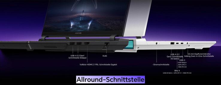 Honor Win H9 nie jest szczególnie kompaktowy z obudową o grubości 2,68 centymetra i wadze 2,38 kilograma, ale laptop do gier wykorzystuje tę przestrzeń, wdrażając szczególnie wydajny system chłodzenia. Połączenie dwóch dużych wentylatorów i pięciu miedzianych rurek cieplnych jest już znane z wielu konkurencyjnych laptopów do gier, ale Honor dodał kolejne cztery mini wentylatory z tyłu.
