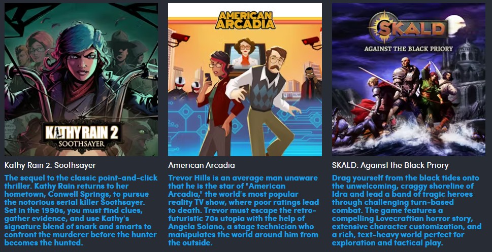 - Kathy Rain Directors Cut - wielokrotnie nagradzana gra przygodowa typu wskaż i kliknij z 2021 roku. Tytuł kosztuje 14,99 USD, gdy nie jest przeceniony, i ma tag zgodności Steam Deck Verified.