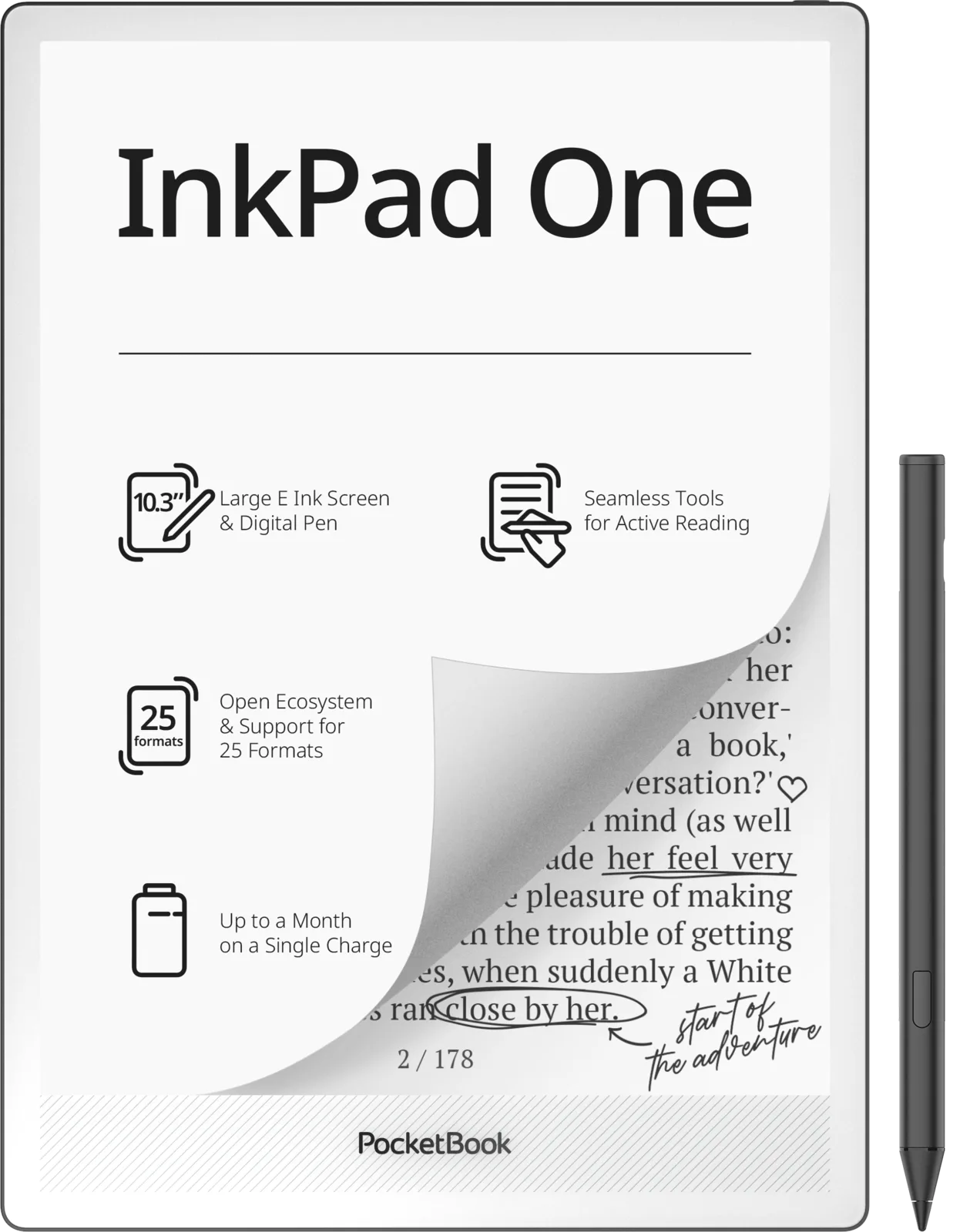 Nowy e-czytnik PocketBook jest zasilany przez system Linux i wykorzystuje otwarty ekosystem, co oznacza, że użytkownicy nie są zależni od poszczególnych sklepów lub platform. Treści można kupować lub wypożyczać z publicznych bibliotek, takich jak Onleihe czy Libby. InkPad One obsługuje 25 popularnych formatów bez konwersji, w tym EPUB, FB2, PDF, AZW oraz formaty komiksowe CBR i CBZ. Według Pocketbook, ebooki z Adobe DRM i LCP DRM są również łatwo dostępne. Treści mogą być synchronizowane i przesyłane do urządzenia za pośrednictwem PocketBook Cloud, Dropbox i Send-to-PocketBook