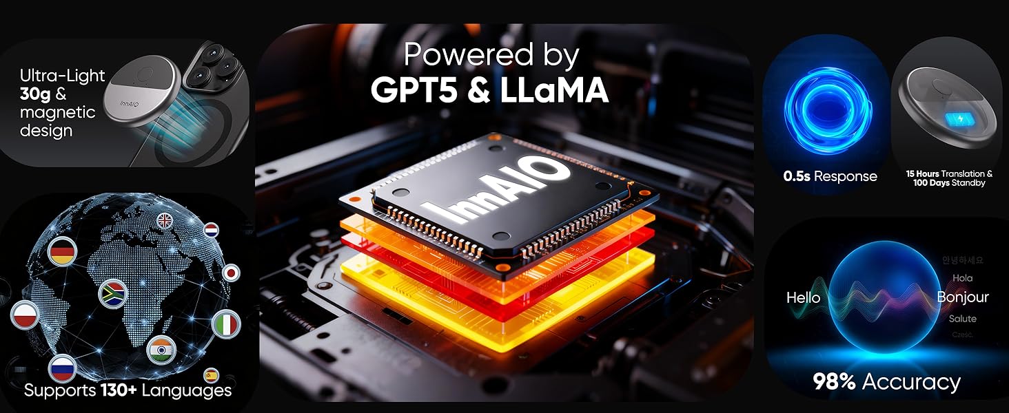 Według firmy, tłumacz jest zasilany przez GPT-5 i model językowy InnAIO i obsługuje ponad 130 języków. Użytkownicy mogą również przełączać się między dialektami, a InnAIO twierdzi, że urządzenie charakteryzuje się szybkością tłumaczenia wynoszącą 0,5 sekundy i dokładnością 98%.