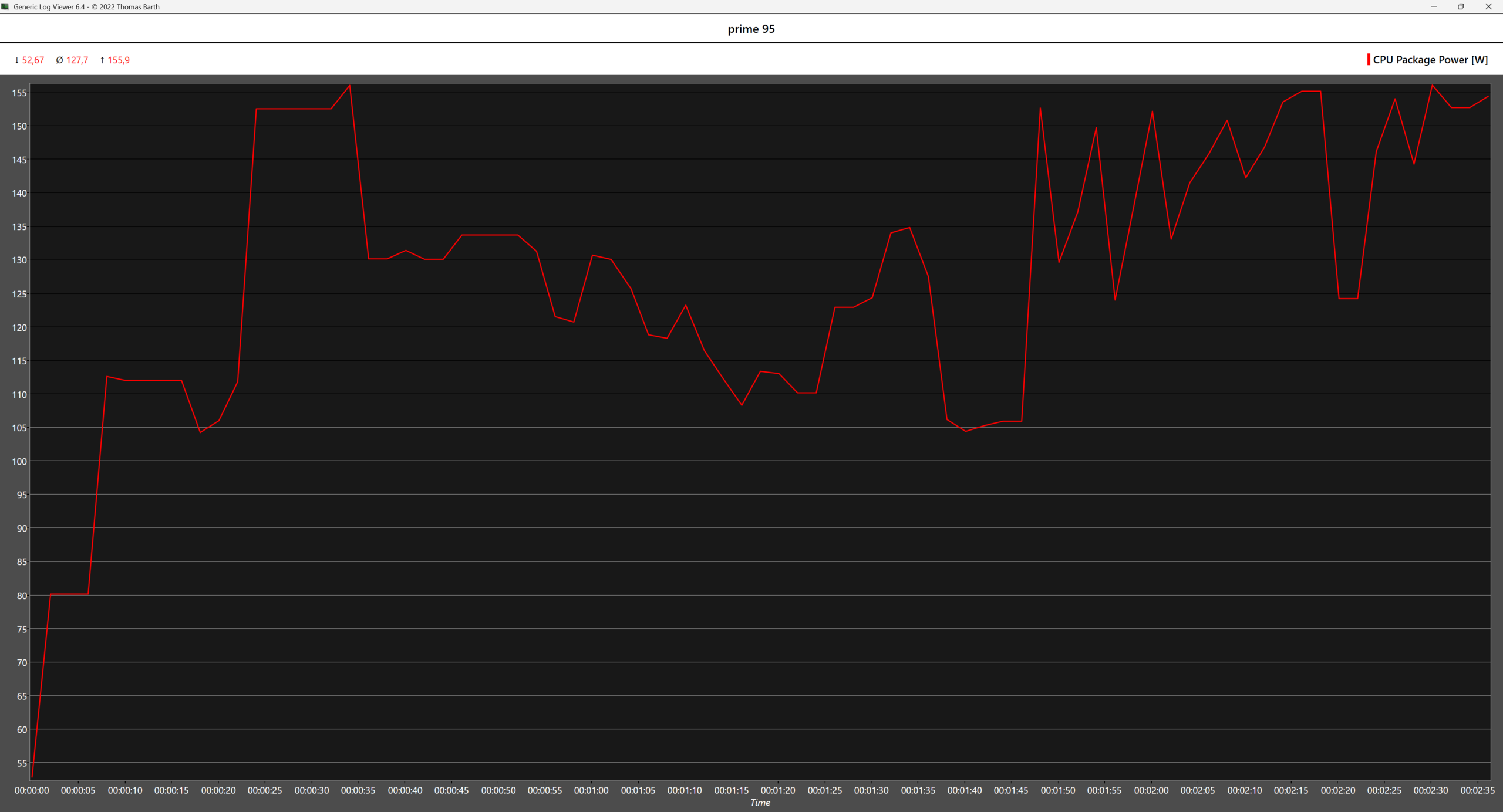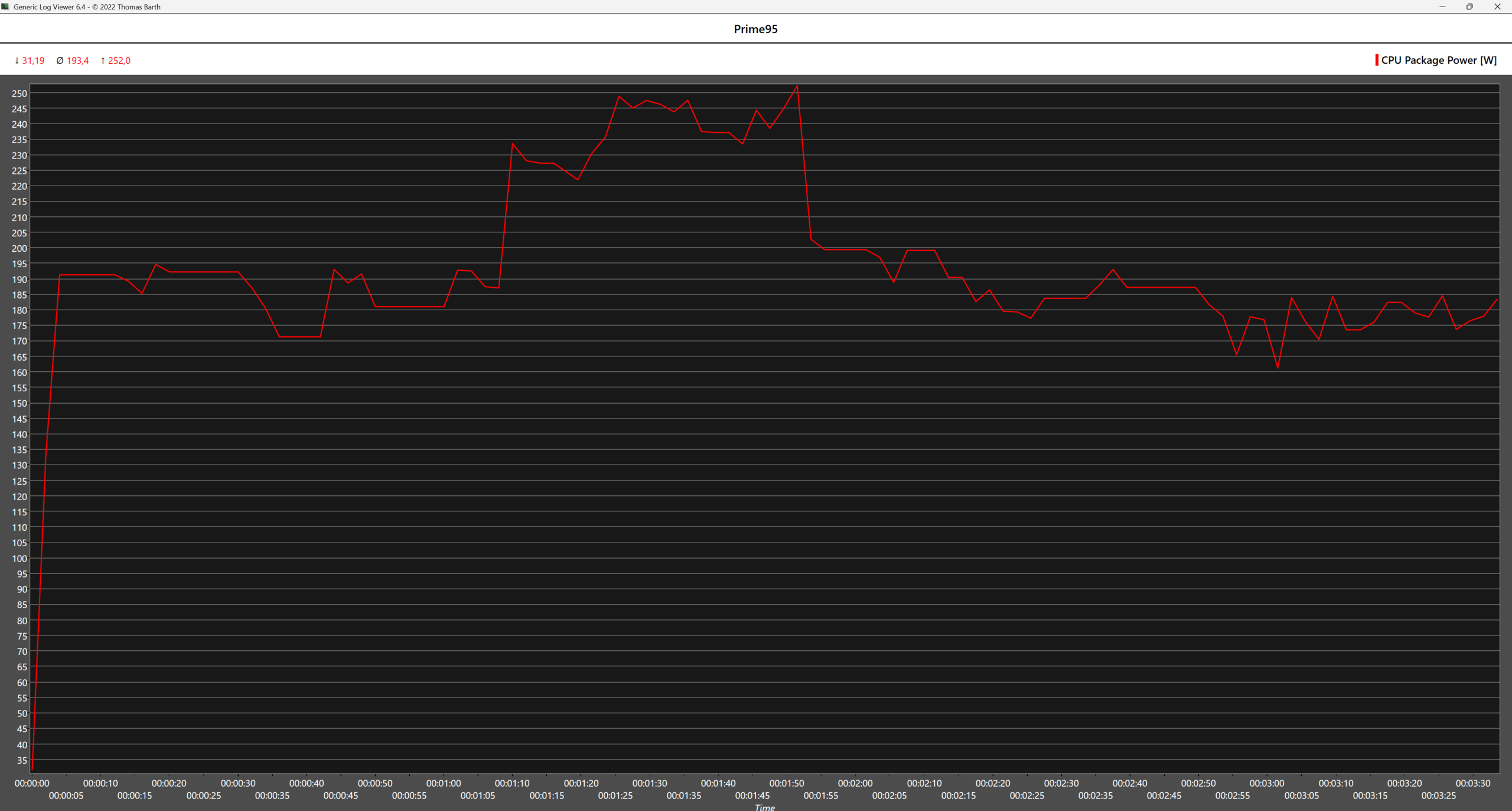 W scenariuszach, w których wykorzystywane są wszystkie rdzenie, takich jak wielordzeniowy test obciążeniowy Cinebench 2024 lub duży test FTT Prime 95, procesor AMD okazuje się mniej energochłonny, nawet przy profilu zasilania Wysoka wydajność. W teście Prime 95 procesor AMD zużywa średnio 65 W mniej w porównaniu do procesora Intela, podczas gdy procesor Intela również wchodzi w stan dławienia termicznego i prawie osiąga TJMAX w pierwszej minucie testu, a następnie temperatury stopniowo spadają. Te ekstremalne przypadki są jednak mało prawdopodobne w rzeczywistych scenariuszach.