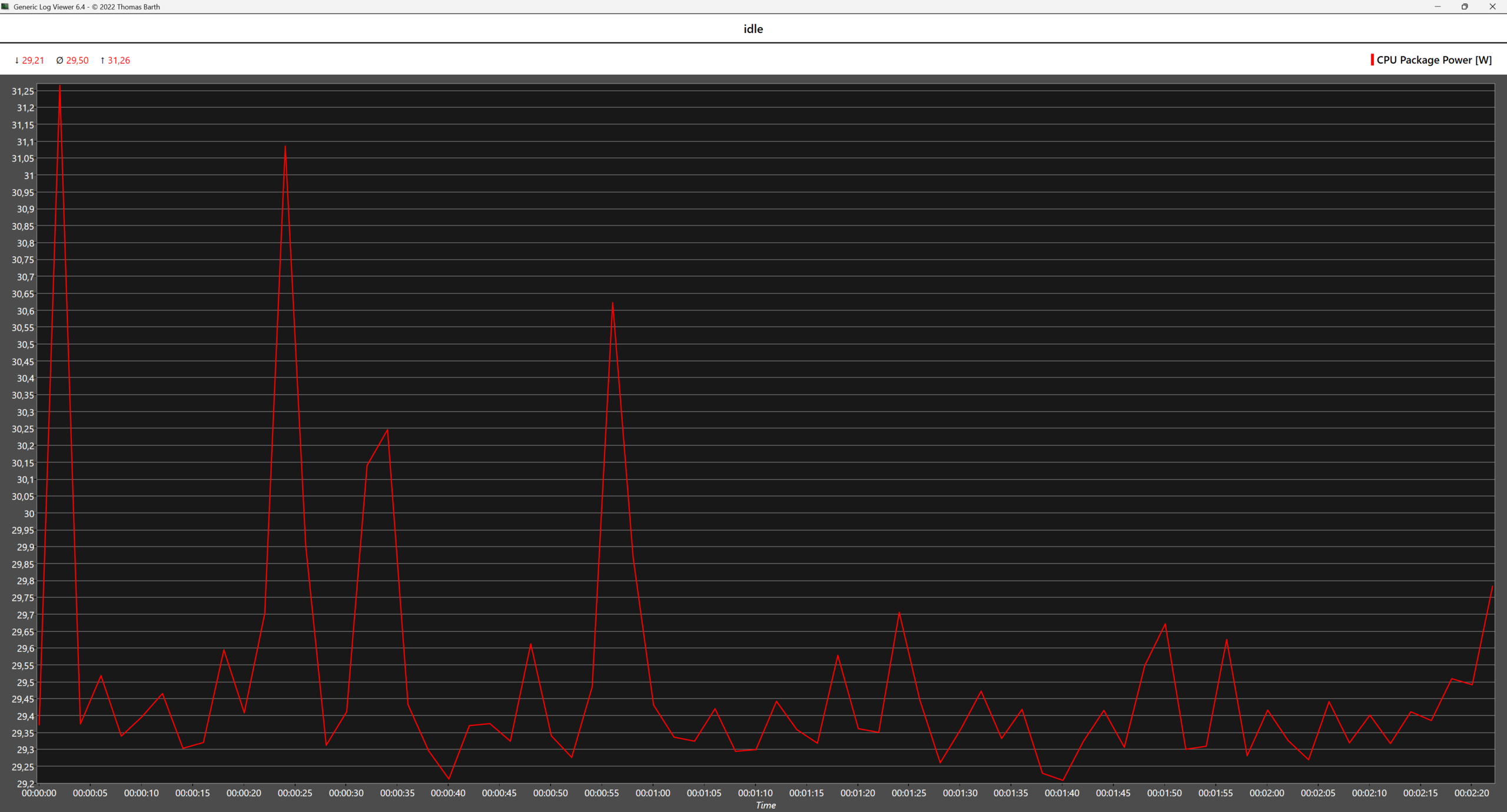 Gdy procesor Intela nie jest mocno obciążony, wydaje się być nieco bardziej energooszczędny niż jego konkurent AMD. W związku z tym w trybie bezczynności i w scenariuszach z jednym rdzeniem, a nawet w większości testów gier, w których GPU wykonuje większość pracy, procesor Intela zużywa średnio 20-30 W mniej. Pobór mocy AMD można poprawić do punktu, w którym w większości przypadków dorównuje on procesorowi Intela, jeśli w systemie Windows 11 zostanie aktywowany zrównoważony profil zasilania, a jego wydajność w grach nie wydaje się być pogorszona, ale może to mieć pewien negatywny wpływ na produktywność i obciążenia związane z tworzeniem treści.