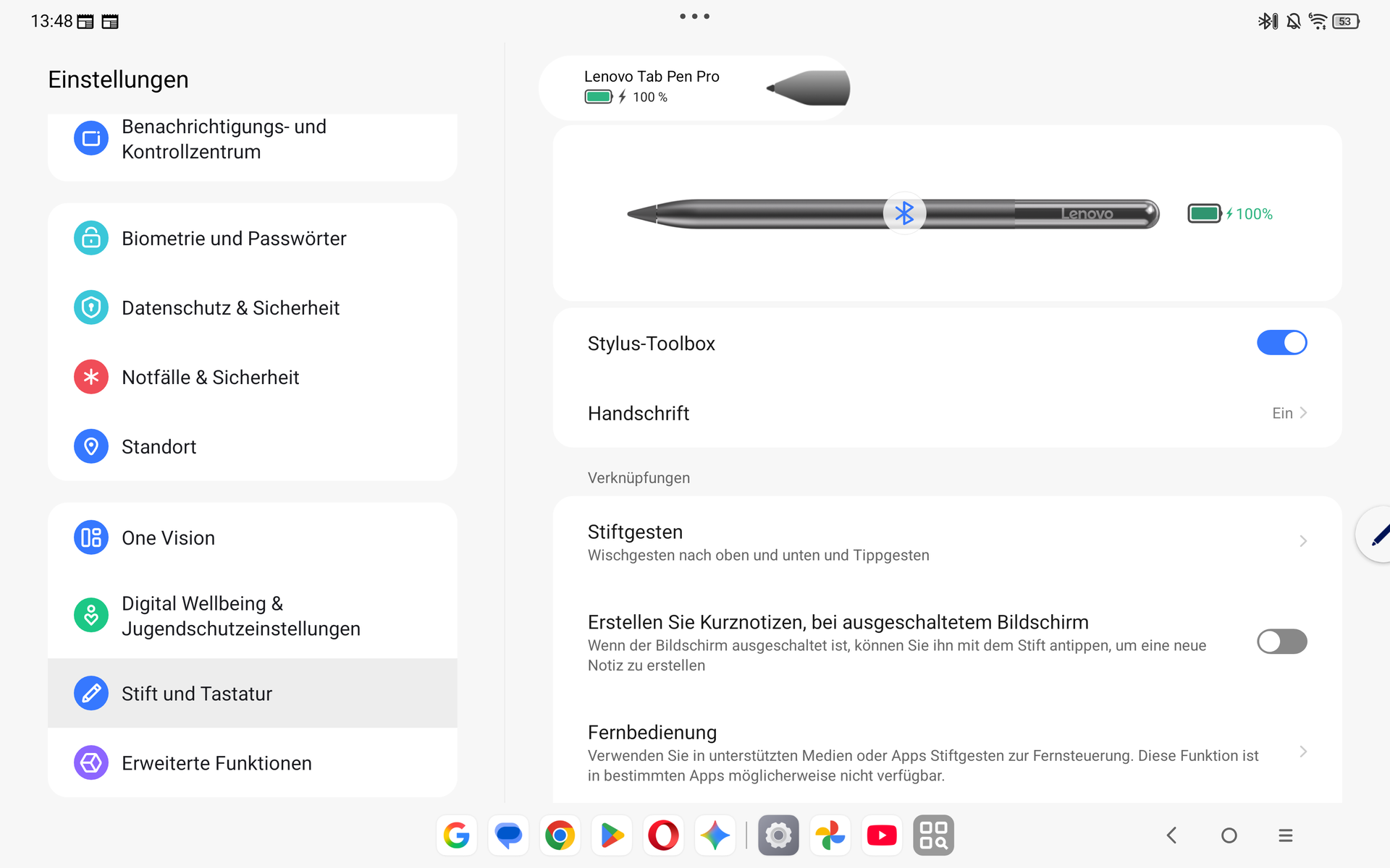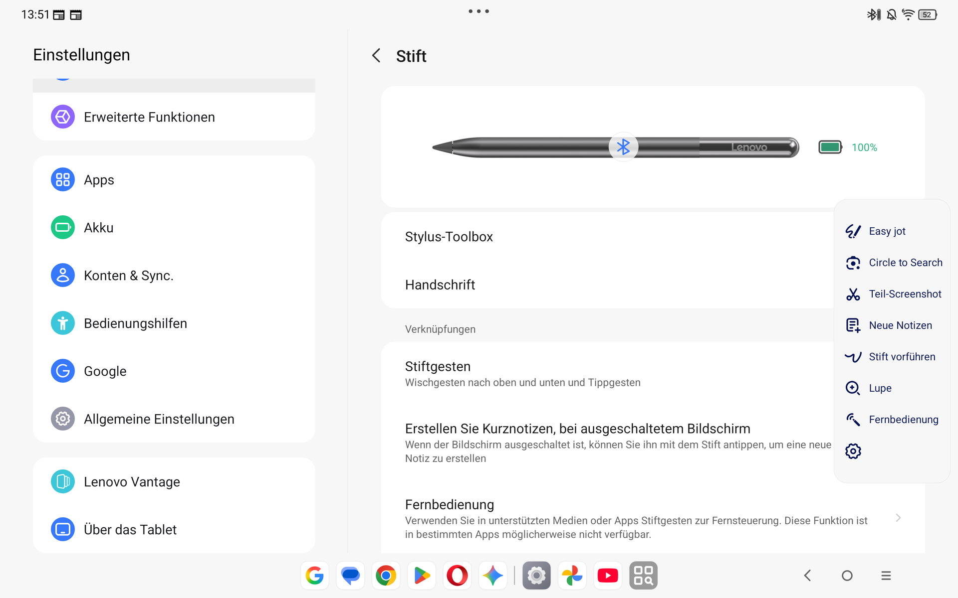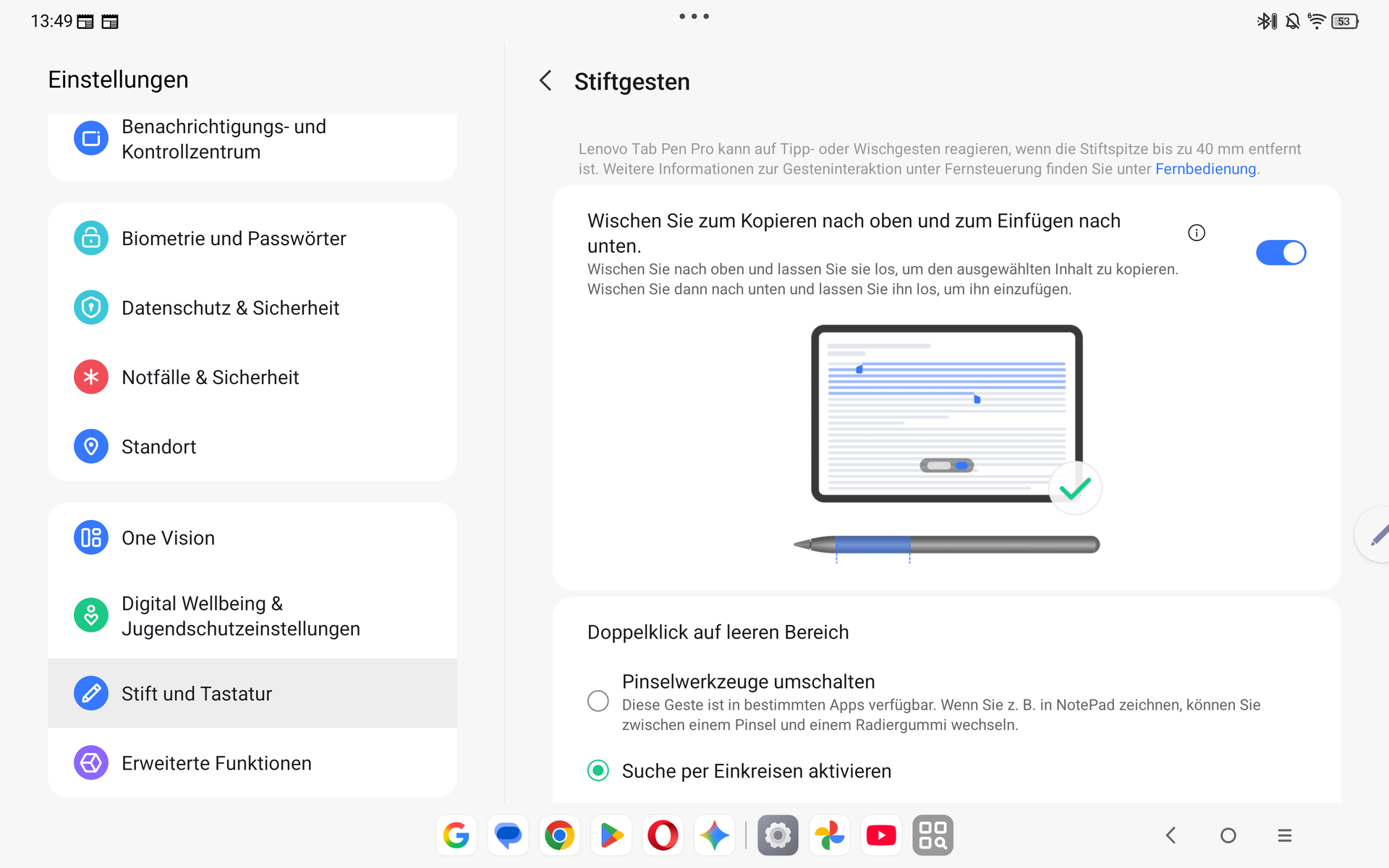 Oprócz funkcji AI, takich jak Circle to Search, interfejs ZUI17 oferuje również wiele opcji korzystania z Lenovo Tab Pen Pro w celu zwiększenia produktywności. Dzięki wrażliwemu na dotyk obszarowi z przodu obudowy pióra, gesty mogą być używane na przykład do wybierania paska narzędzi. Działa to bardzo niezawodnie w codziennym użytkowaniu.