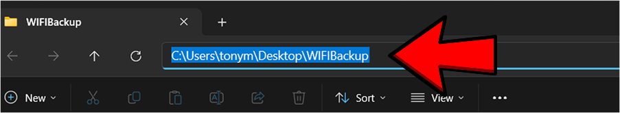 - Proszę utworzyć folder, w którym będą zapisywane profile sieci Wi-Fi i hasła. W tym przykładzie utworzyłem folder na pulpicie i nazwałem go WIFIBackup.