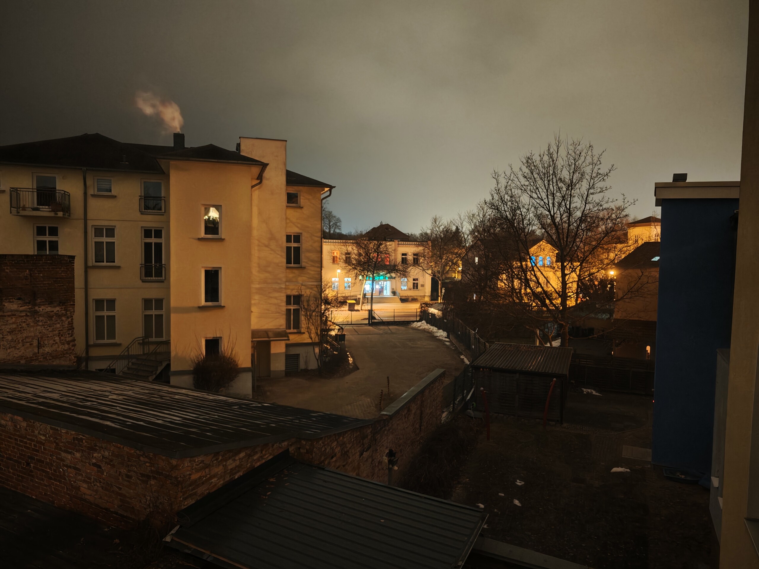 Różnica w klasie staje się jeszcze wyraźniejsza w nocy. W przypadku naszych zdjęć przy słabym oświetleniu flagowiec Xiaomi zapewnia dobrze wyważony obraz z dużą ilością szczegółów, bez zdmuchiwania świateł wewnątrz domów. Z drugiej strony, Galaxy S25 Ultra daje zupełnie inny wynik - zauważalnie ziarnisty i z dużą ilością szumów w obiekcie.