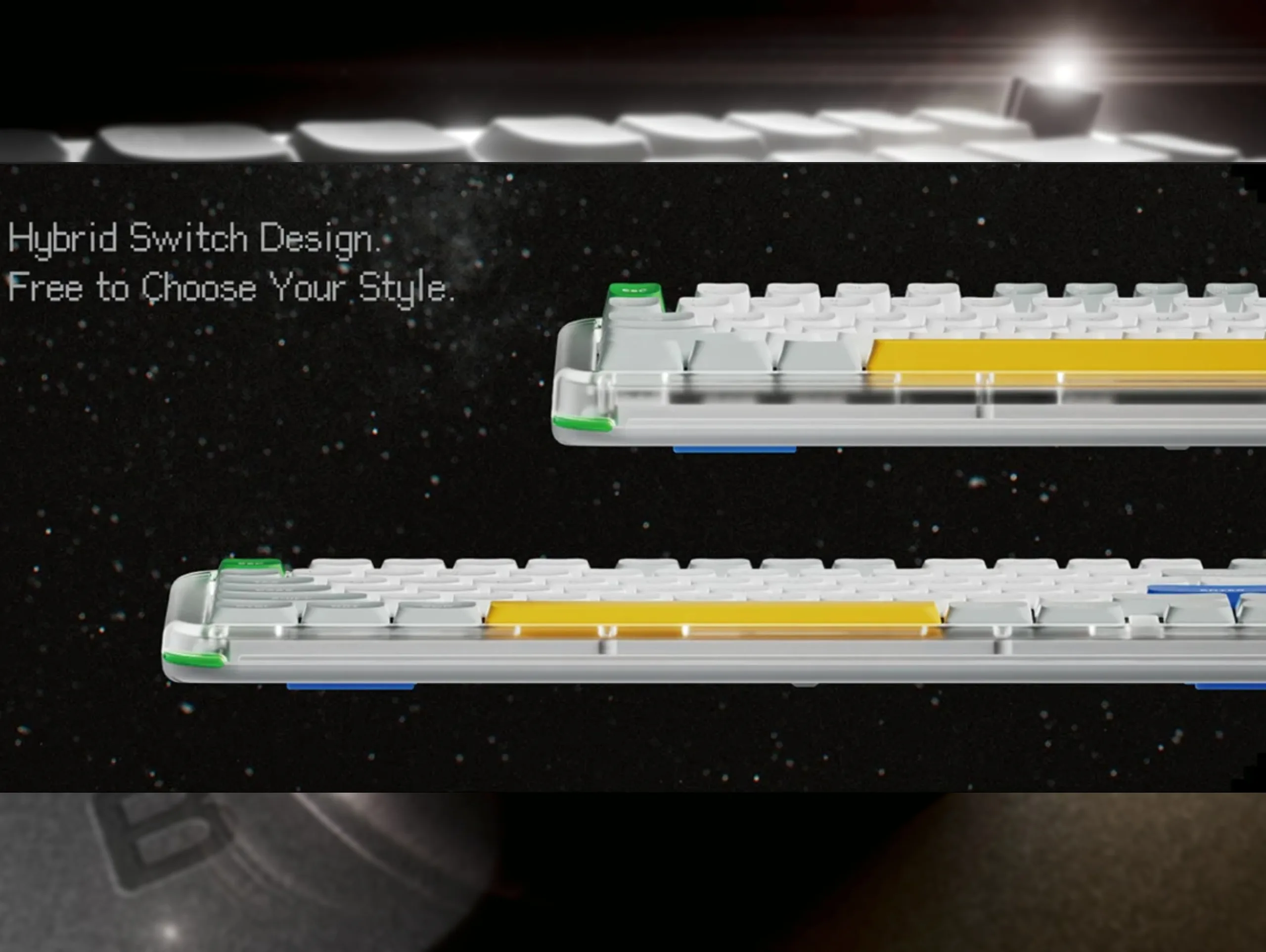 Główną cechą Kick75 jest kompatybilność zarówno z niskoprofilowymi, jak i pełnowymiarowymi przełącznikami mechanicznymi, a wszystko to w tej samej płytce drukowanej i obudowie - przynajmniej w większości przypadków. Choć NuPhy nieco skąpi szczegółów, jest kilka rzeczy, które możemy wyciągnąć z oficjalnej strony zwiastuna Kick75.