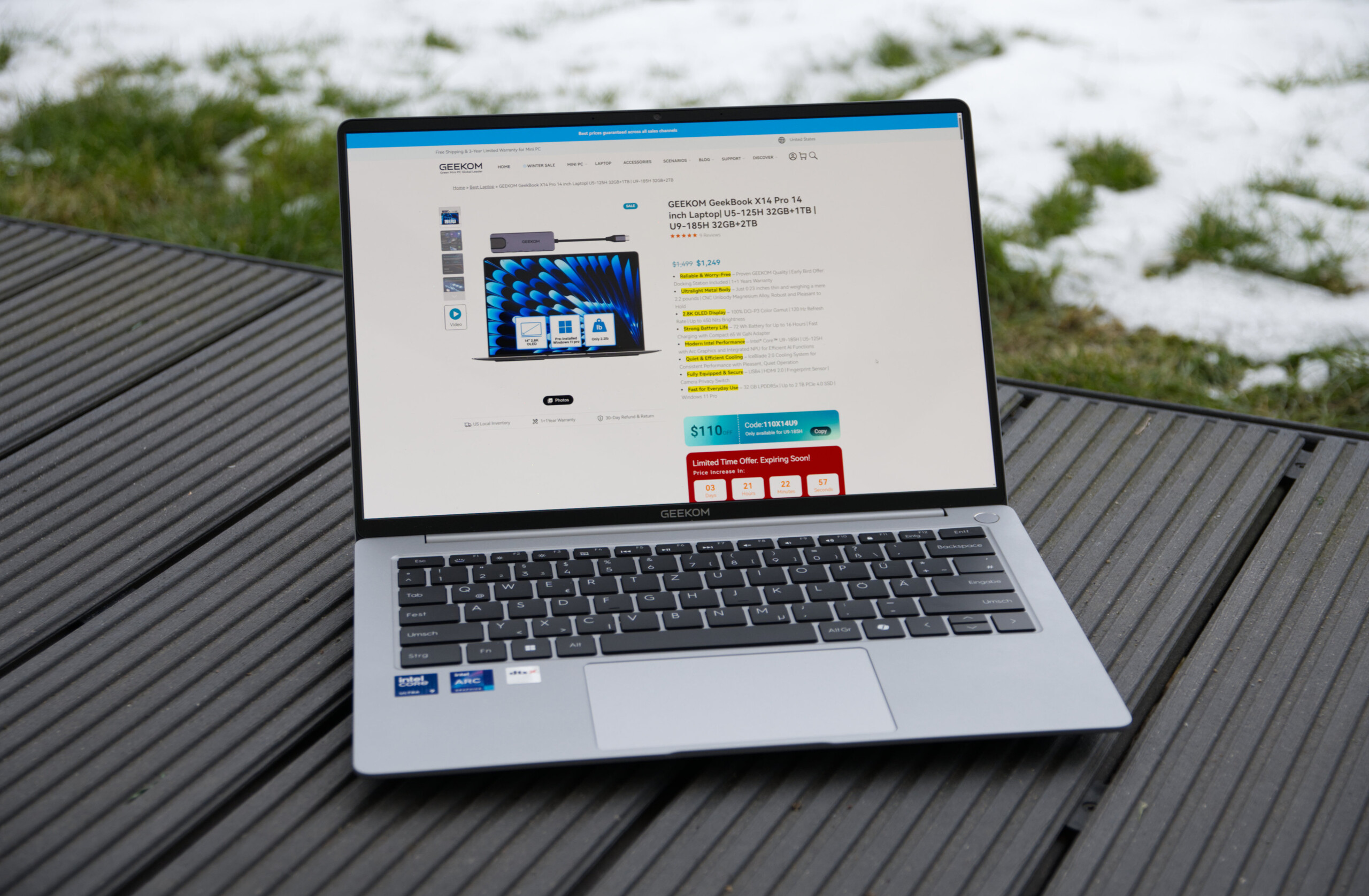 | Geekom GeekBook X14 Pro Intel Core Ultra 9 185H ⎘ Intel Arc 8-Core iGPU ⎘ 32 GB Pamięć, 2000 GB SSD | Amazon: Cena katalogowa: 1599€ | 1 kg | 20 mm | 14.00" 2880x1800 243 PPI OLED | |