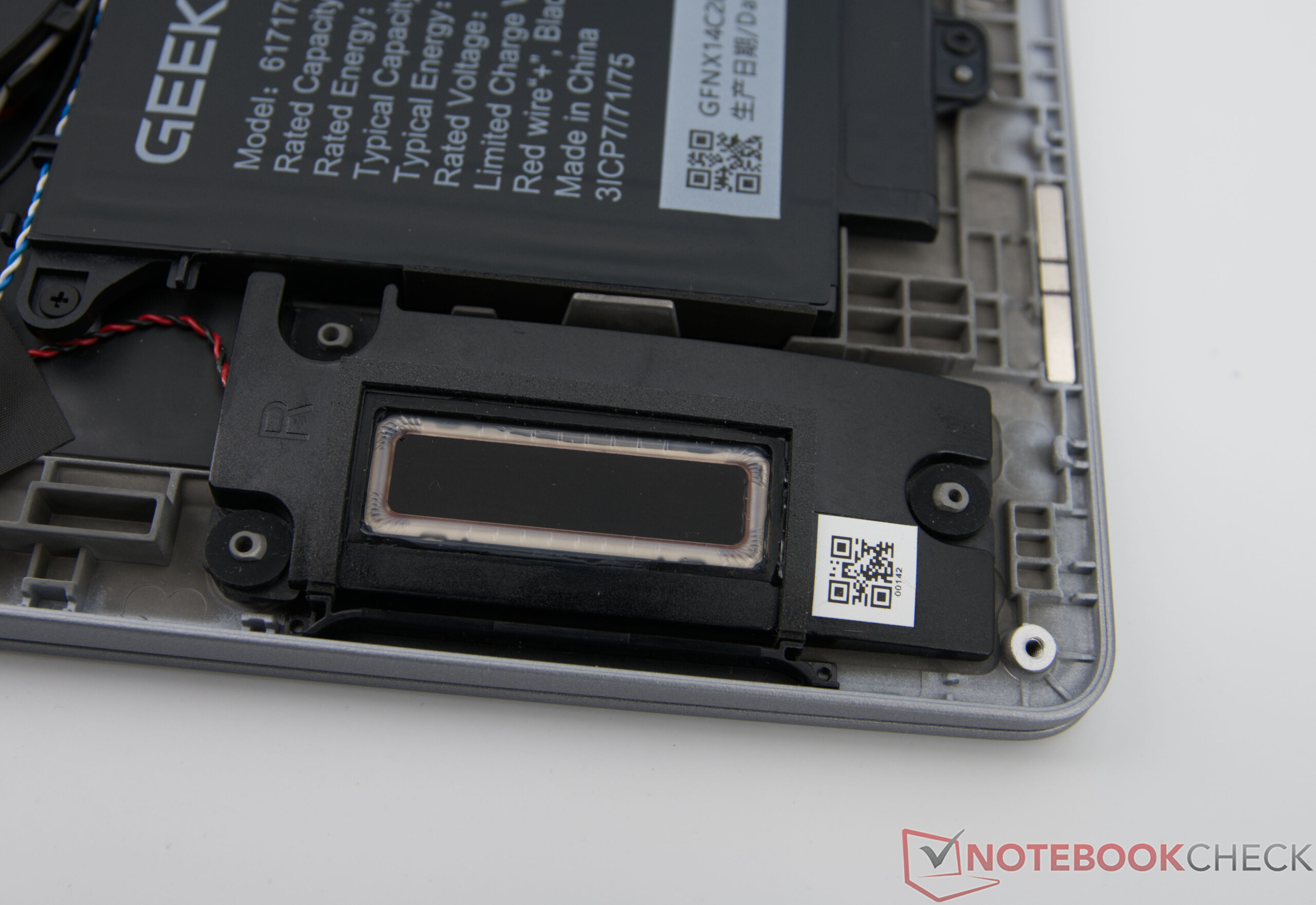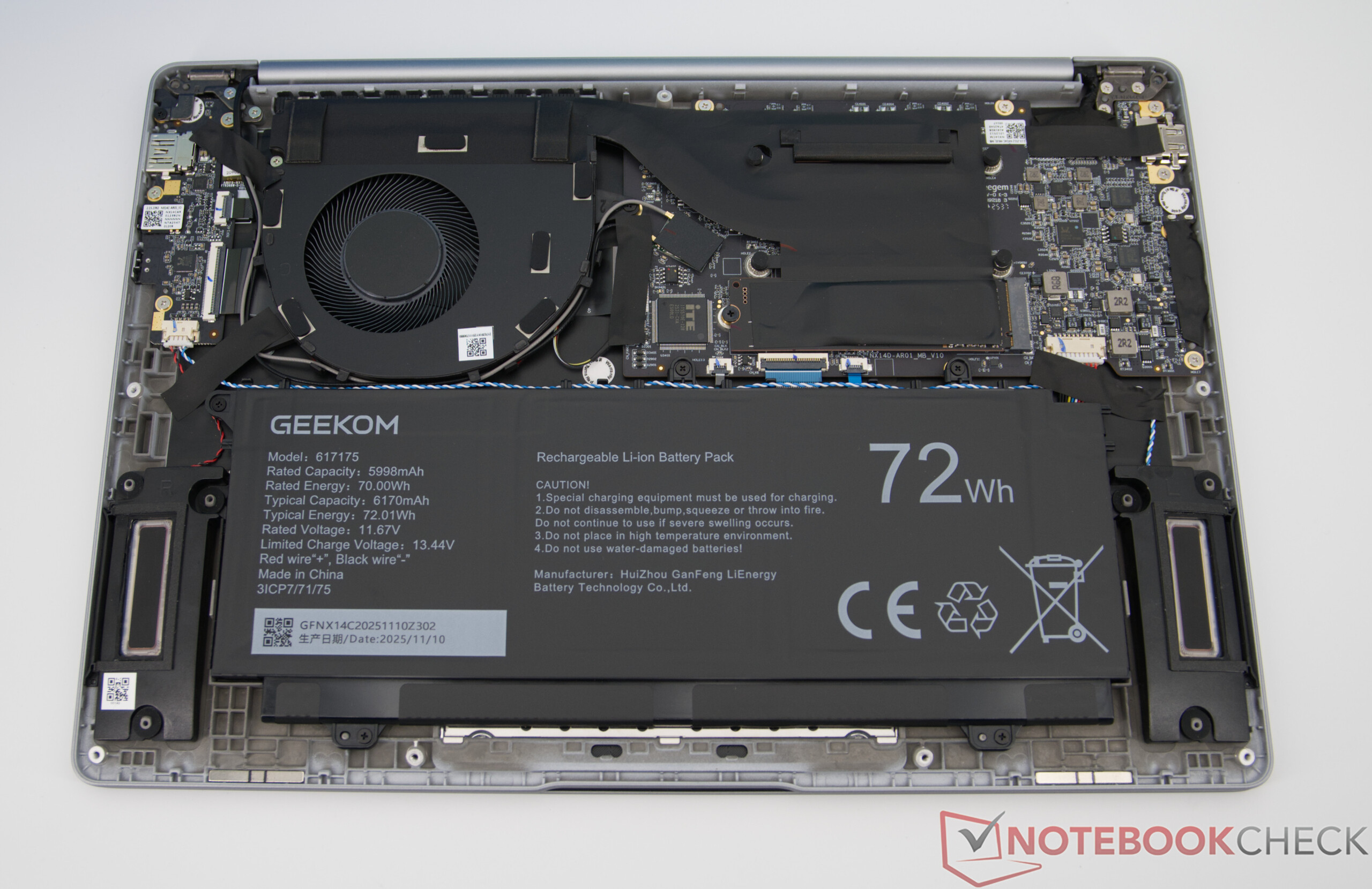 GeekBook X14 Pro bazuje na akumulatorze o pojemności 72 Wh, który pozwala na przyzwoity czas pracy w codziennym mieszanym użytkowaniu biurowym, internetowym i strumieniowym oraz umożliwia pracę mobilną przez kilka godzin. W zależności od użytkowania, duża część dnia roboczego może być zarządzana bez gniazdka elektrycznego. Jeśli bateria jest pusta, pełne naładowanie zajmuje około trzech godzin.