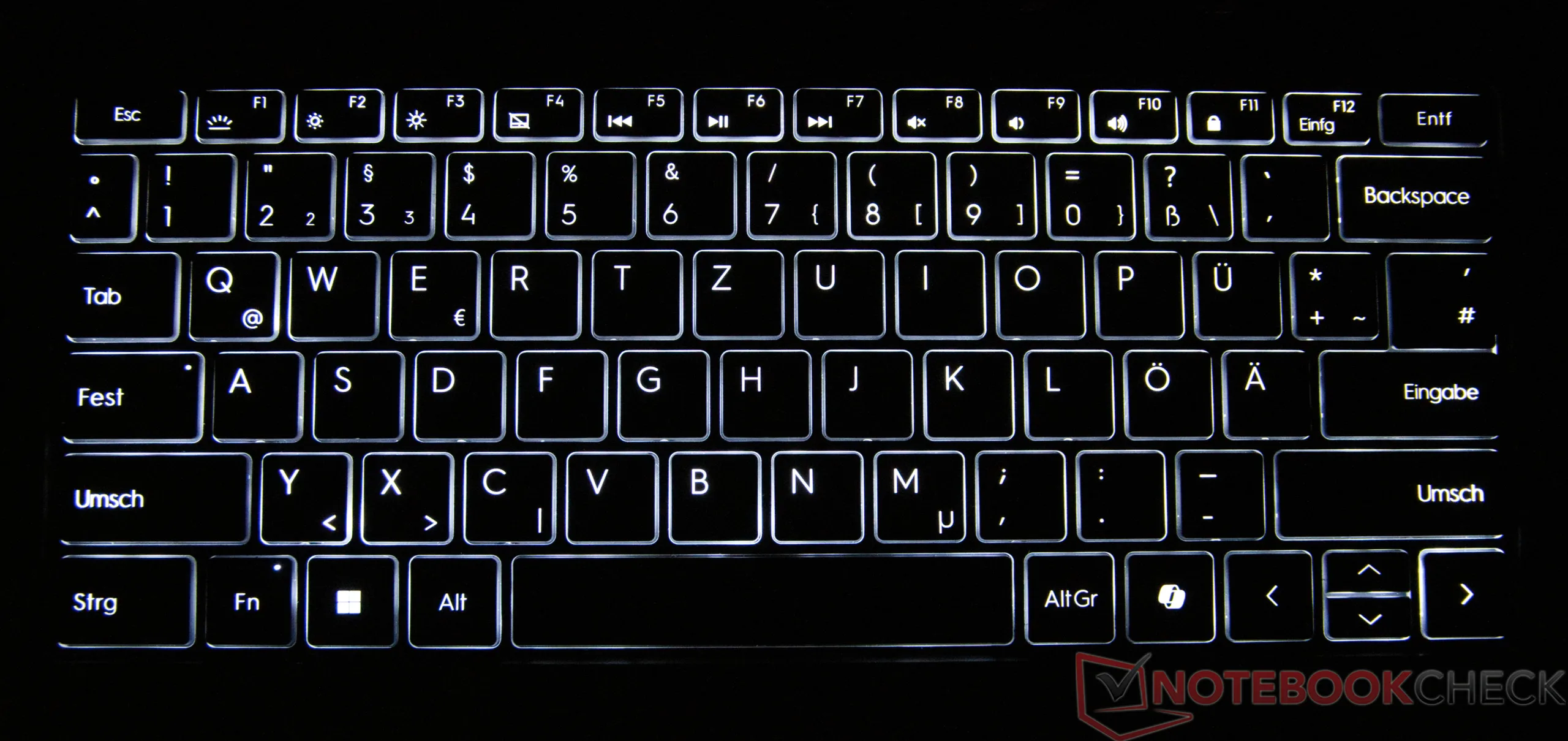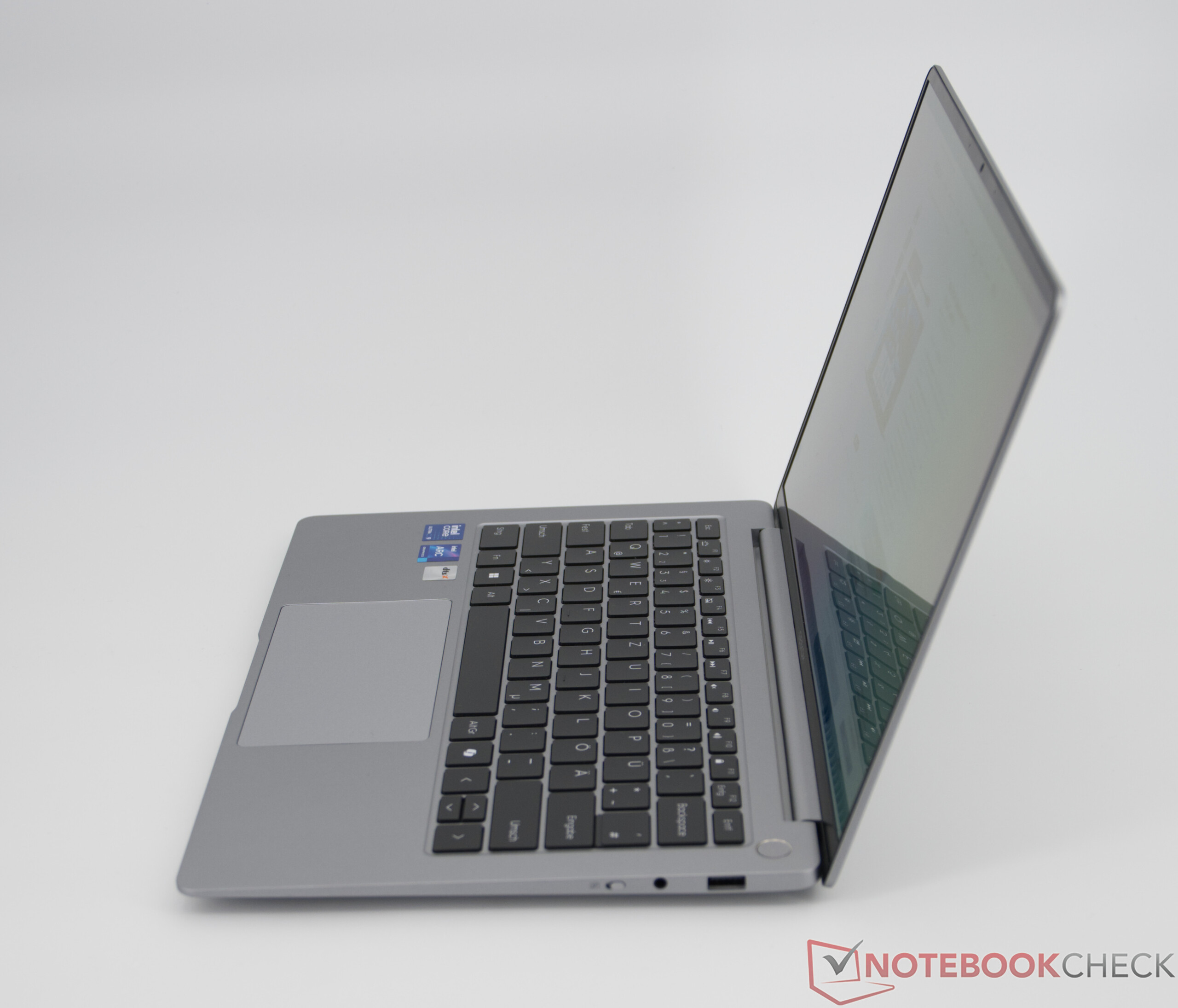 Klawiatura GeekBook X14 Pro oferuje niski skok klawiszy połączony z wyraźnie wyczuwalnym punktem nacisku. Klawisze zapewniają precyzję pisania, co umożliwia również dłuższe sesje pisania, chociaż sprzężenie zwrotne jest nieco twardsze. Touchpad o wymiarach 12 × 7,2 centymetra działa niezawodnie, precyzyjnie wprowadza dane wejściowe i obsługuje typowe gesty wielodotykowe. Wysokiej jakości dotyk i dyskretny, dobrze wytłumiony odgłos kliknięcia podkreślają przyjemną łatwość użytkowania.