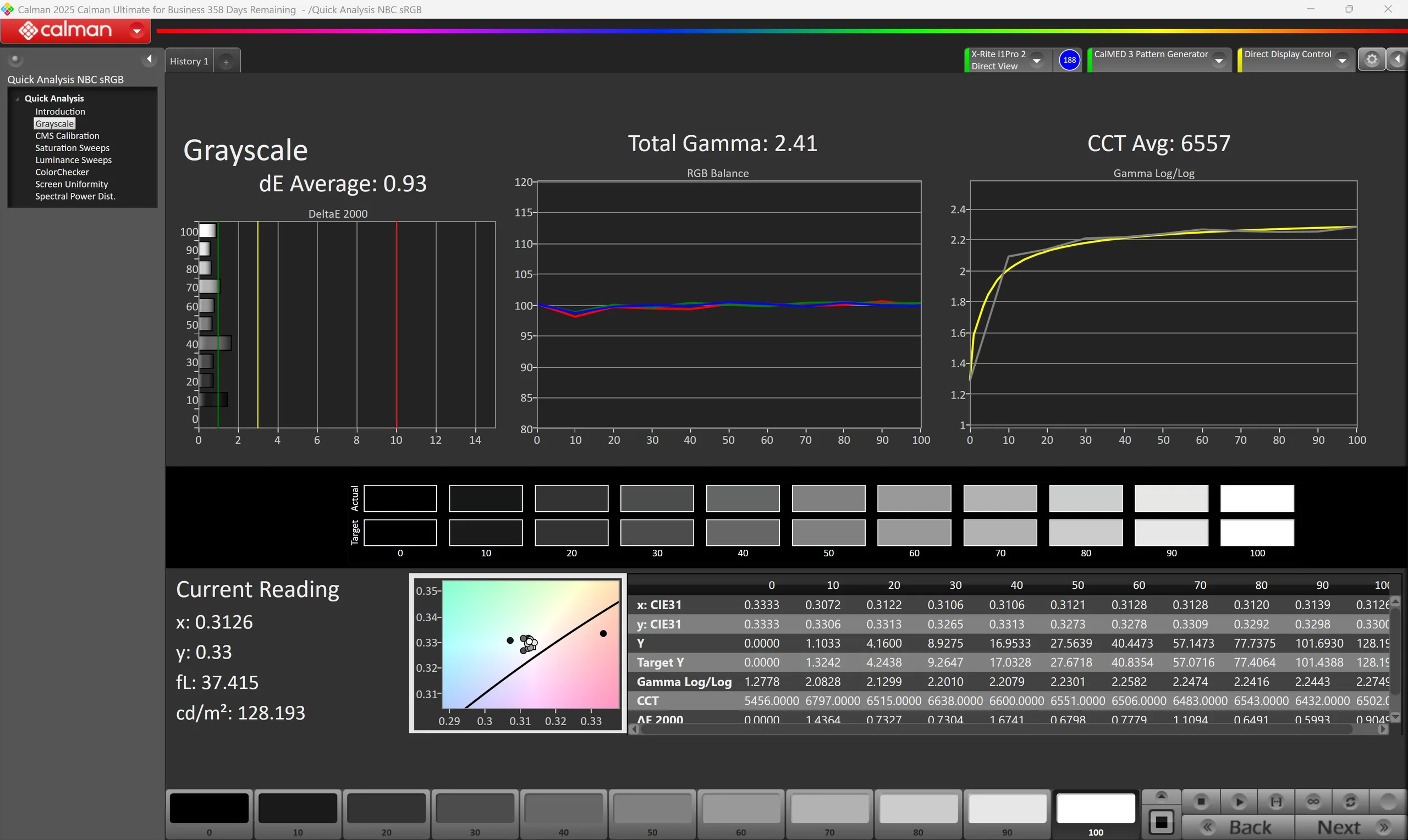 ΔE Greyscale Calman: 1.25 | ∀{0.09-98 Ø5}