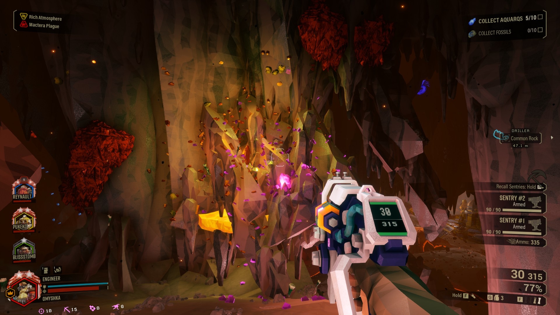 W grze dostępne są cztery różne klasy - zwiadowca, strzelec, inżynier i wiertacz - każda z jasno określoną rolą i unikalnymi narzędziami, które wzajemnie się uzupełniają. W pełni zniszczalne środowisko pozwala graczom kopać tunele, tworzyć skróty lub taktycznie kontrolować ciasne przestrzenie podczas walki. Misje obracają się wokół zbierania zasobów, wypełniania celów i odpierania fal obcych stworzeń. W miarę postępów gracze odblokowują nowe bronie, ulepszenia i nagrody kosmetyczne, aby jeszcze bardziej dostosować swoje wyposażenie.