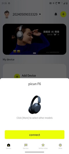 Po pierwszym włączeniu Picun F6 są one natychmiast wyświetlane jako dostępne urządzenie Bluetooth. Jeśli aplikacja Picun jest zainstalowana, słuchawki są tam wymienione jako urządzenie w pobliżu. Aby korzystać z pełnej funkcjonalności aplikacji, należy utworzyć konto Picun.