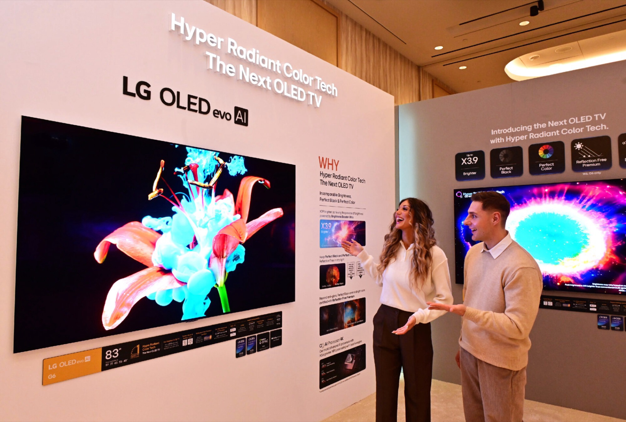Oprócz ultracienkiego, całkowicie bezprzewodowego Wallpaper TV (W6), firma LG zaprezentowała również modele G6 i C6. Następca LG OLED G5 zachowuje konstrukcję w stylu galerii, umożliwiając montaż telewizora bezpośrednio na ścianie. Z drugiej strony, telewizor otrzymał trzy znaczące ulepszenia.