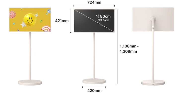 Alternatywnie dostępny jest również mini pilot i sterowanie głosowe. LG StandbyMe 2 Max różni się od zwykłych telewizorów przede wszystkim przenośnością. LG dołącza podstawkę, której wysokość można regulować w zakresie od 1,10 do 1,30 metra. Kółka ułatwiają przenoszenie urządzenia z jednego pomieszczenia do drugiego. LG oferuje opcjonalny jednopunktowy uchwyt ścienny, który można przymocować za pomocą jednej śruby