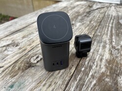 UGREEN przesłał również swoją Mini MagSafe Power Station. Jest to stacja nablatowa, która może ładować do czterech urządzeń jednocześnie. Jej główną cechą jest składana platforma MagSafe, którą można dostosować do dowolnego kąta do 60°. Posiada również dwa porty ładowania USB-C, które mogą ładować z mocą do 100 W, dzięki czemu nadają się do ładowania większości laptopów. Jest też pojedynczy port USB-A, który zapewnia moc do 22,5 W, a platforma MagSafe obsługuje ładowanie z mocą do 15 W. Platforma MagSafe jest również kompatybilna z bezprzewodowym ładowaniem Qi z mocą do 7,5 W, co działało z różnymi słuchawkami dousznymi TWS, telefonami Android oraz iPhone'em 8 i iPhone'em 11 (chociaż żaden z nich nie może korzystać z magnetycznego mocowania platformy).
