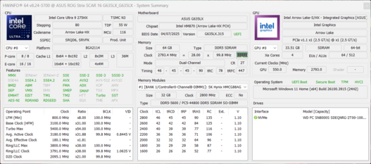 Nowy high-endowy procesor Intela Core Ultra 9 275HX może niemal w pełni wykorzystać swój potencjał w Strix SCAR 16 dzięki wysokim limitom mocy, wyprzedzając 16-calowych konkurentów we wszystkich testach porównawczych CPU. Wyprzedził on tylko o 9% starego SCAR 16, podczas gdy tylko większy ROG Strix SCAR 18 był jeszcze nieco szybszy. Ponadto jego wydajność pozostała bardzo stabilna.