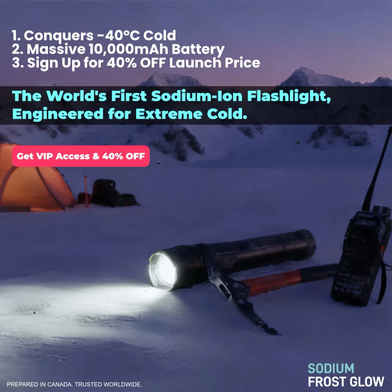 Baterie litowe działają najlepiej powyżej zera, ponieważ ich napięcie spada znacznie szybciej w bardzo niskich temperaturach, co drastycznie skraca ich czas pracy. Nowa latarka została zaprojektowana w celu rozwiązania tego problemu poprzez zastosowanie baterii sodowo-jonowej. Bateria ta ma zachować 88% swojego zwykłego czasu pracy w temperaturze -40°C, w porównaniu do zaledwie 15% w przypadku baterii litowej.