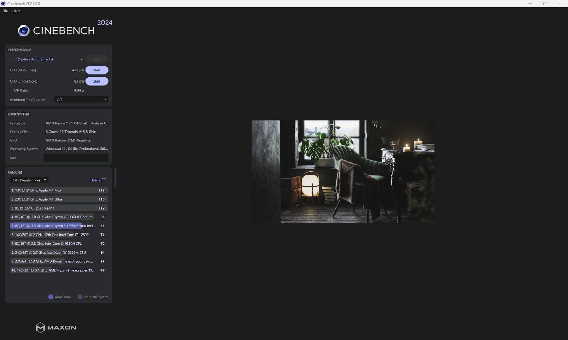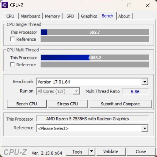 | Przeciętny AMD Ryzen 5 7535HS | |