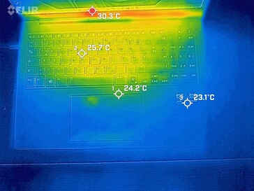 (+) Podpórki pod nadgarstki i touchpad są chłodniejsze niż temperatura skóry i maksymalnie 26.9 °C / 80.4 F i dlatego są chłodne w dotyku.
