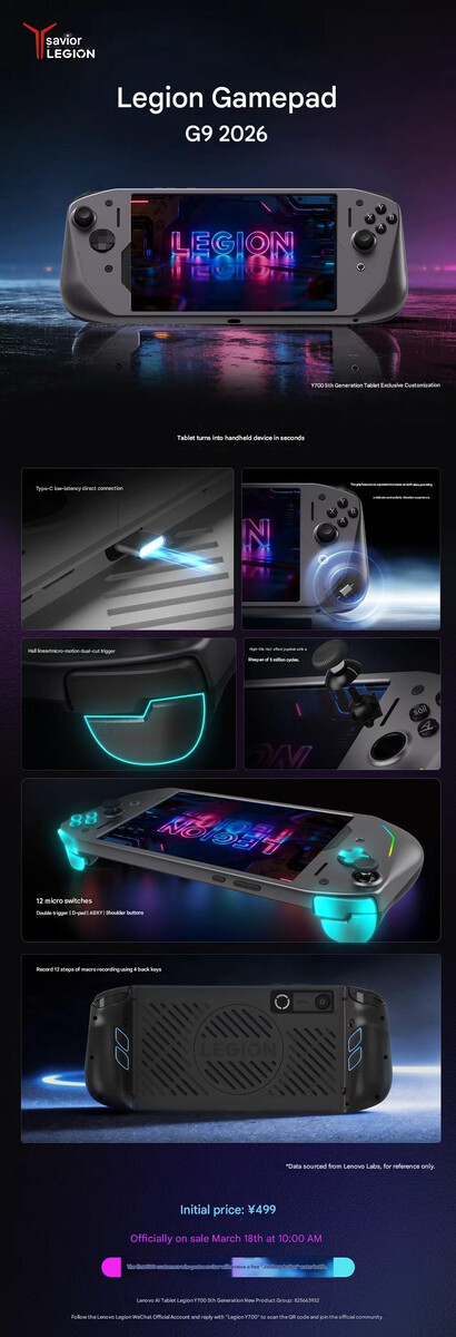 Kontroler Legion G9 2026 jest oficjalnie kompatybilny tylko z Legion Y700 Gen 5 za pośrednictwem zamontowanego z boku tabletu portu USB typu C. Kontroler powinien jednak działać również z Legion Tab Gen 5. Lenovo nie wyjaśniło jednak, czy Legion G9 2026 będzie sprzedawany na całym świecie. Dla porównania, Lenovo wyceniło swój nowy kontroler na 499 CNY (~ 73 USD) w Chinach.