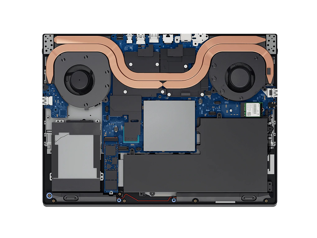 Ultra 7 155H: Wysokiej klasy układ Meteor Lake, który zadebiutował w grudniu 2023 roku. Ten procesor Core Ultra 1. generacji zastąpił układy Core 13. generacji; ma do dyspozycji 16 rdzeni (6 + 8 + 2) i 22 wątki. Jego wydajne rdzenie, których jest 6, działają z częstotliwością do 4,8 GHz, podczas gdy jego wydajne rdzenie, których jest 10 (8 głównych rdzeni plus 2 dodatkowe znajdujące się na Low Power Island) działają z częstotliwością do 3,8 GHz. Zintegrowana jednostka AI Boost NPU oferuje dwa silniki 3. generacji do sprzętowej akceleracji obciążeń AI. "Minimalny gwarantowany" pobór mocy tego procesora w laptopie wynosi 28 W, podczas gdy jego pobór mocy w trybie Turbo ma utrzymywać się w granicach 115 W.