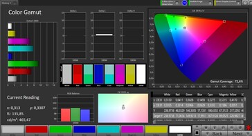 W naszych testach z użyciem fotometru spektralnego i oprogramowania CalMAN stwierdziliśmy bardzo dokładne odwzorowanie kolorów w profilu barwnym "Natural". Pokrycie przestrzeni barw sRGB jest bardzo dobre.