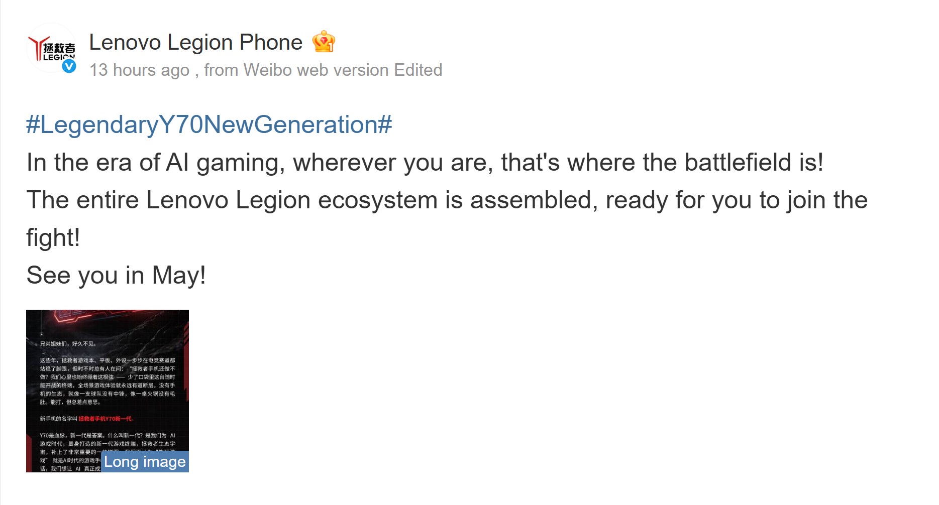 Dzięki niezbyt nieoczekiwanemu ogłoszeniu firma potwierdziła, że wkrótce ogłosi nowy telefon do gier Legion. Marka nie podzieliła się zbyt wiele, ale drażniła się, że premiera w maju 2026 roku jest na kartach.