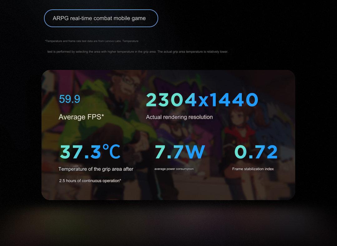 Następnie Lenovo podzieliło się informacją, że nowy tablet do gier Legion może zaoferować średnio 59,9 FPS w mobilnych grach RPG z otwartym światem. Chociaż firma nie udostępniła nazw testowanych gier, w tym segmencie tło na obrazie teaserowym zawiera zrzut ekranu z Genshin Impact, która jest dość wymagającą grą Android.