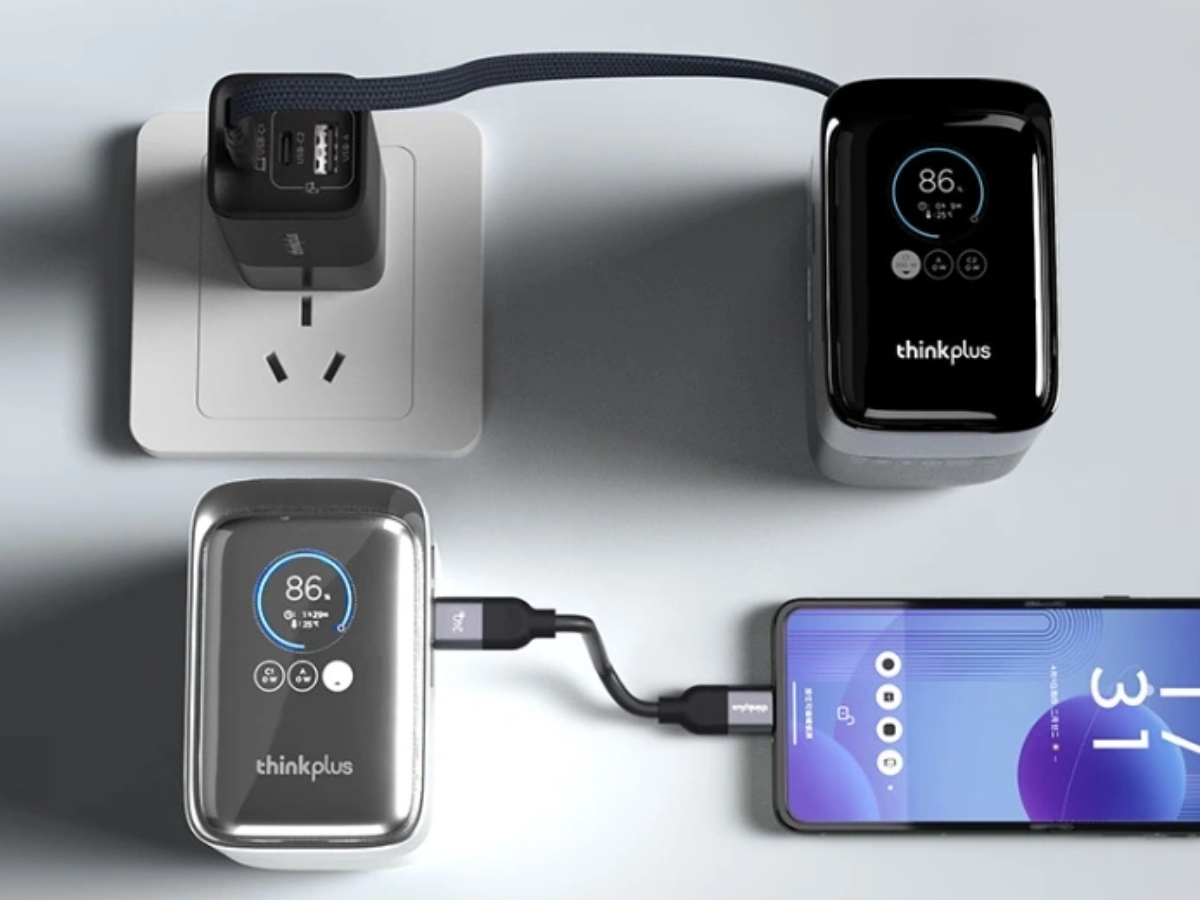 ThinkPlus Retractable Cable Power Bank obsługuje różne protokoły szybkiego ładowania, w tym PPS, PD3.2 i QC, a także oferuje ładowanie przelotowe. Model ten posiada zintegrowany 2,01-calowy wyświetlacz TFT, który pokazuje informacje o ładowaniu w czasie rzeczywistym. Mierzy 82 x 81 x 51 mm (~ 3,2 x 3,2 x 2,0 cala) i jest dostarczany z małą smyczą, aby ułatwić przenoszenie.